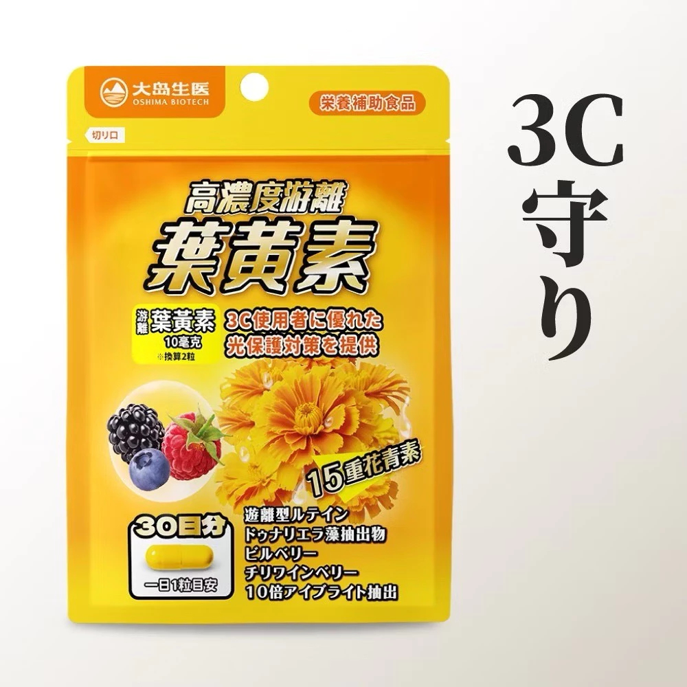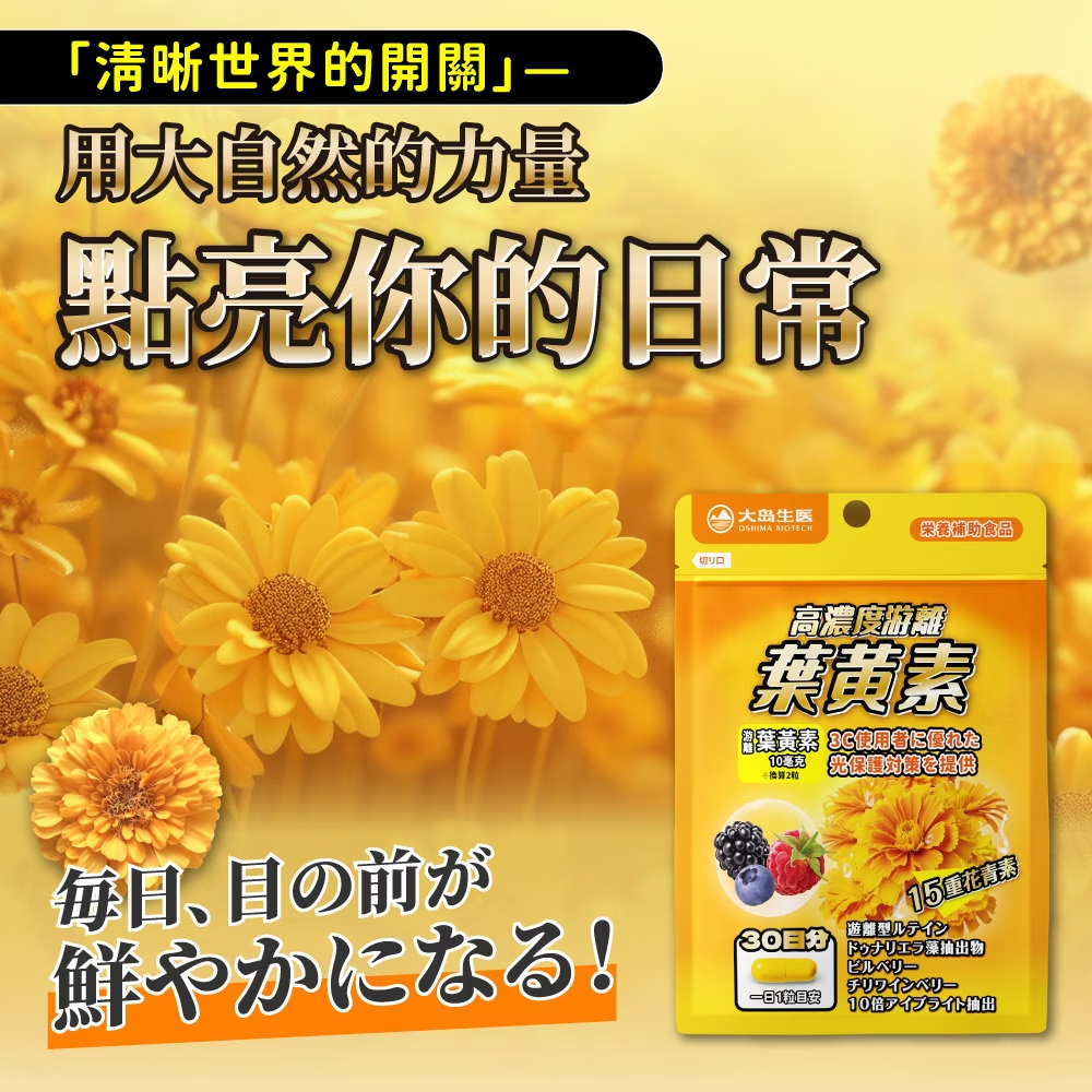 【大島生醫】高濃度游離葉黃素膠囊 30粒|金盞花來源游離型葉黃素10mg × 15種花青素超級莓果精華|山桑子 × 智利酒果 × 小米草 × 杜沙藻|台灣製 3C族日常配方