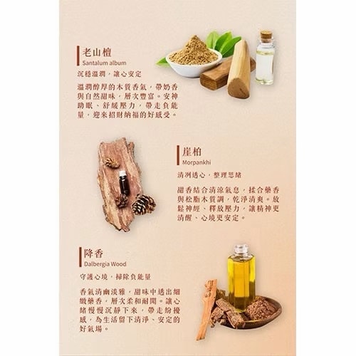 • 添加崖柏、檀香等精油,散發淡雅香氣
