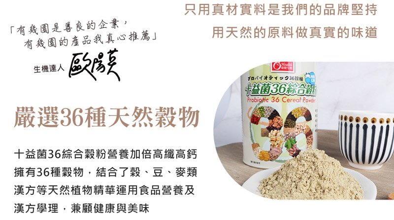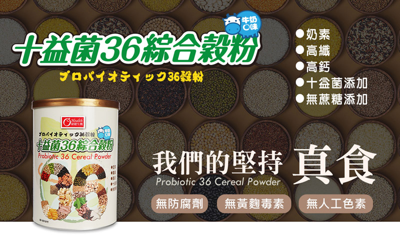 十益菌36綜合穀粉,擁有36種穀物,結合了穀、豆、麥類漢方等天然植物精華,