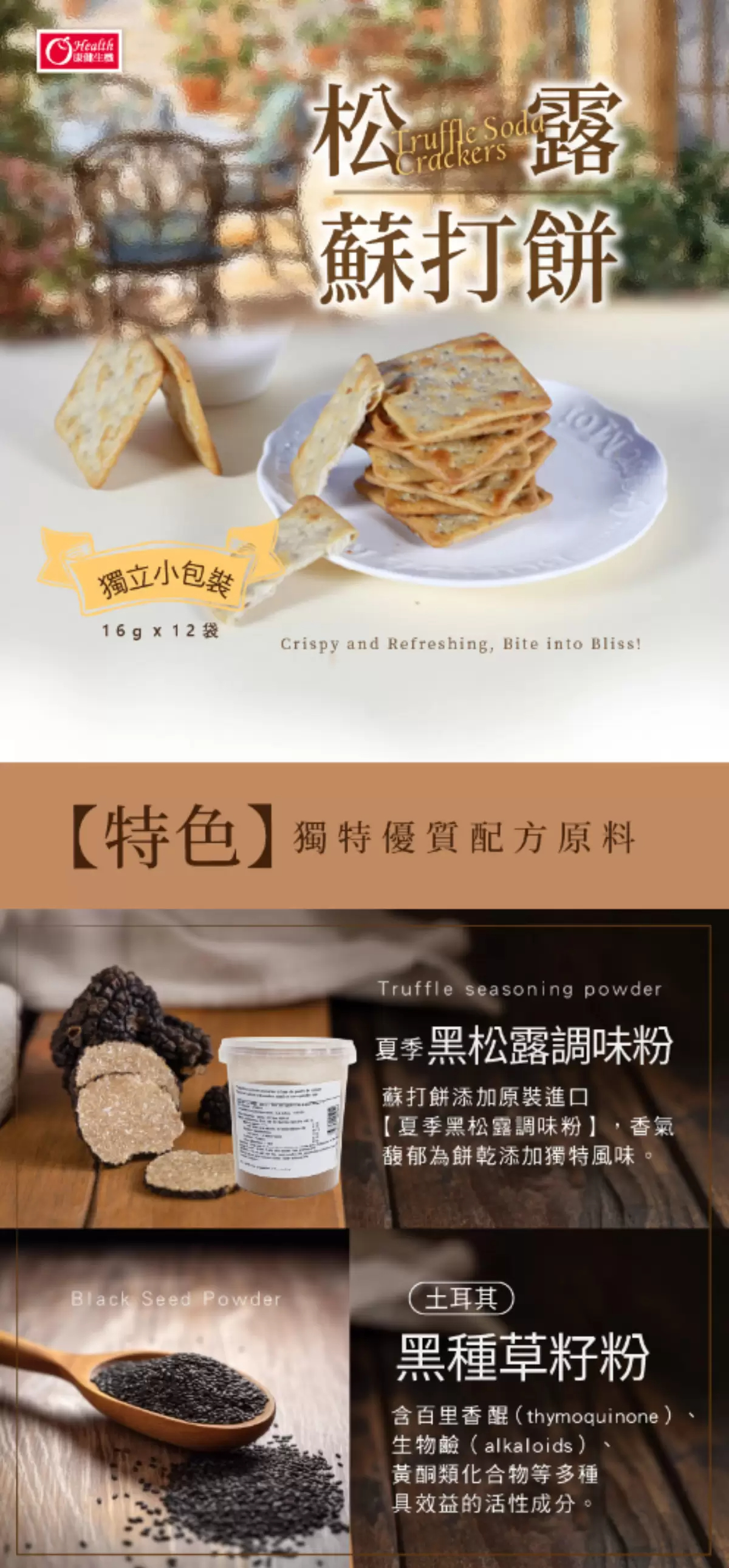 【康健生機】松露蘇打餅 16g*12包 添加 黑種草籽粉 天然 健康 蘇打餅 全素