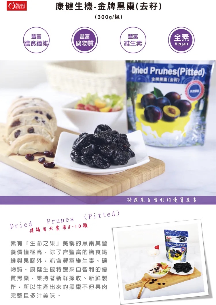 【康健生機】金牌去籽黑棗 300g|智利頂級黑棗|專利去籽技術|果肉飽滿多汁|高膳食纖維維生素C|健康零食養生果乾
