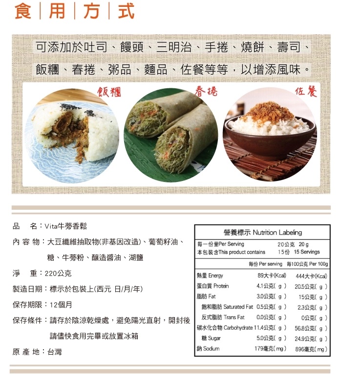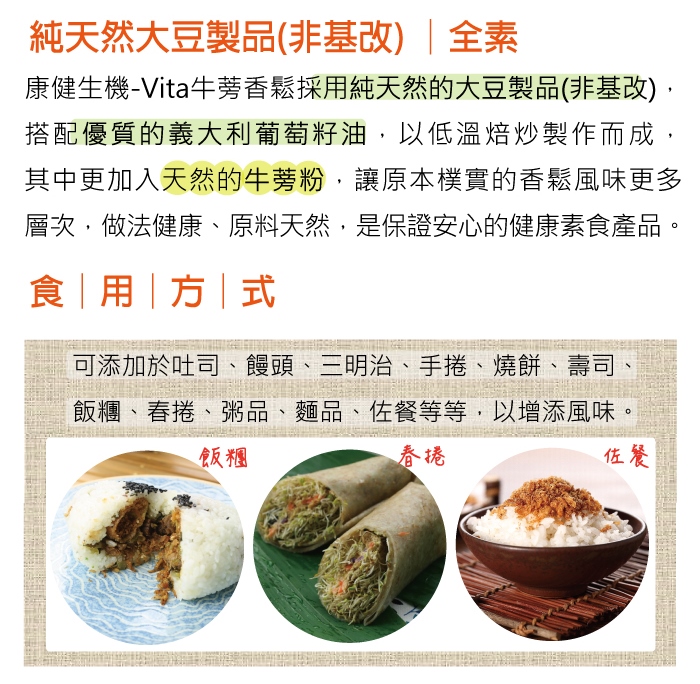 【康健生機】Vita牛蒡香鬆 220g|純素可食|低溫焙炒|無味精防腐劑