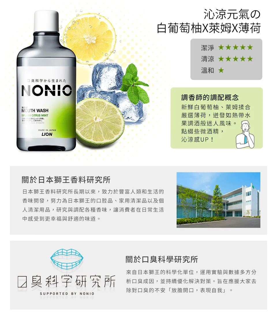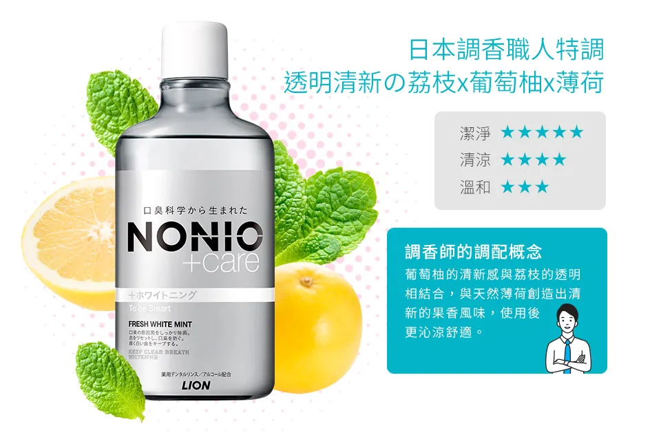 【日本獅王 LION】NONIO 終結口氣漱口水|浸潤薄荷/澄橘薄荷/晶燦亮白|600ml 日本原裝進口 長效淨澈口氣