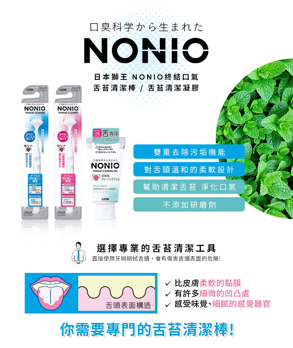 【日本獅王 LION】NONIO 終結口氣舌苔清潔凝膠 45g|溫和無研磨劑|薄荷清新