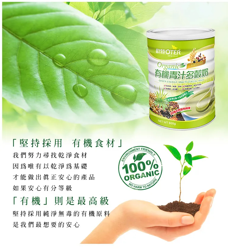 【歐特 OTER】有機紫麥多穀奶 有機黑穀多穀奶 有機青汁多穀奶 800g/罐 有機 紫麥 黑穀 多穀奶