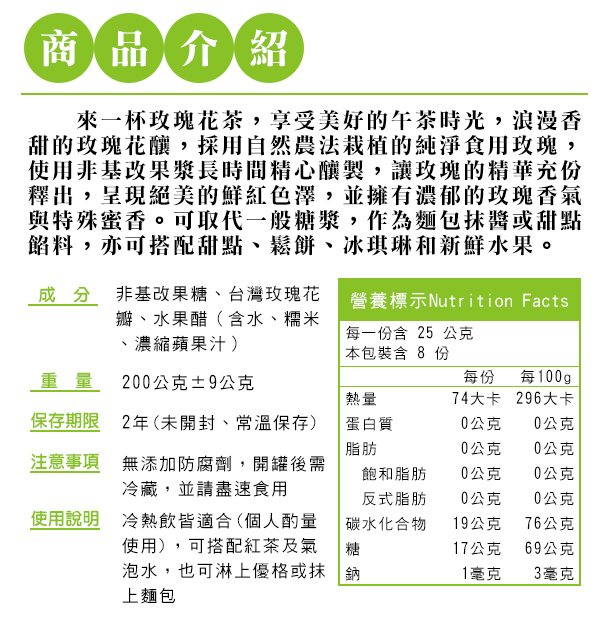 【毓秀私房醬】玫瑰花釀 200g|自然農法食用玫瑰|純素甜蜜花果醬|冷熱飲甜點佐料