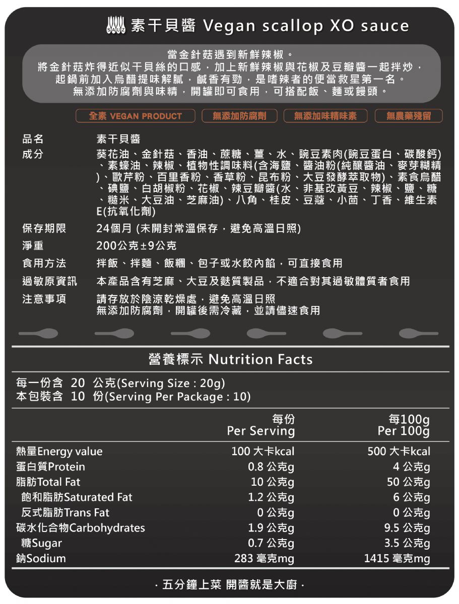 【毓秀私房醬】素干貝醬 200g|Vegan Scallop XO Sauce|金針菇拌炒|純素即食辣醬