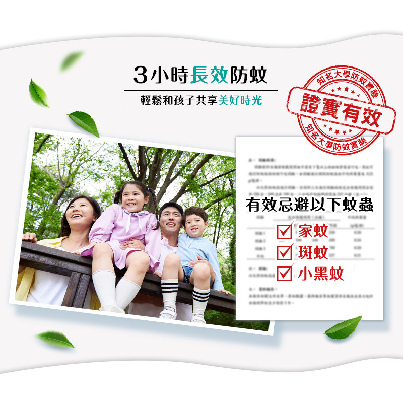 1. 知名大學實證2-3小時,有效驅趕一般蚊及小黑蚊。