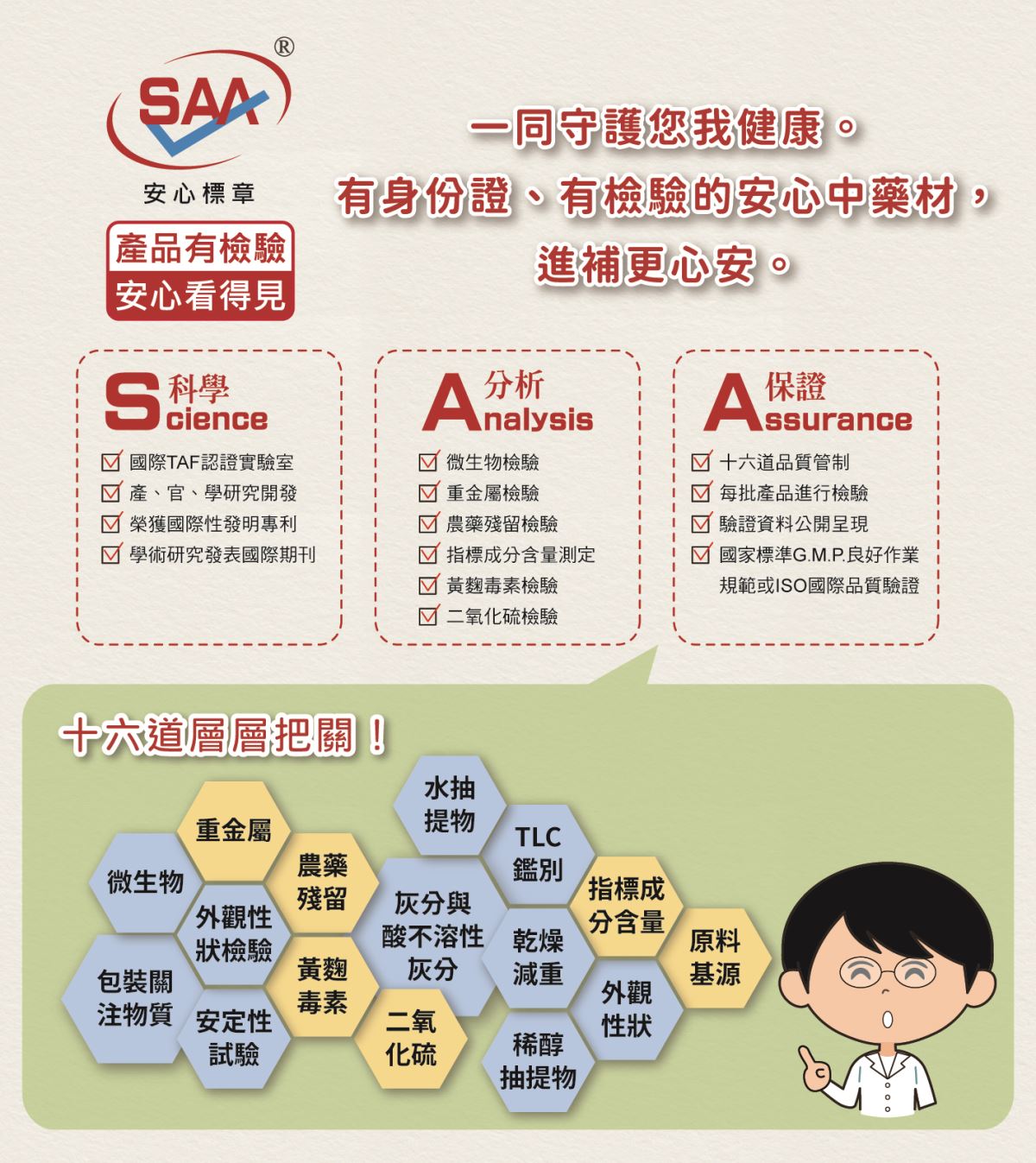 包含311項農藥檢驗、重金屬、二氧化硫、黃麴毒素、指標性成分檢驗 均合格