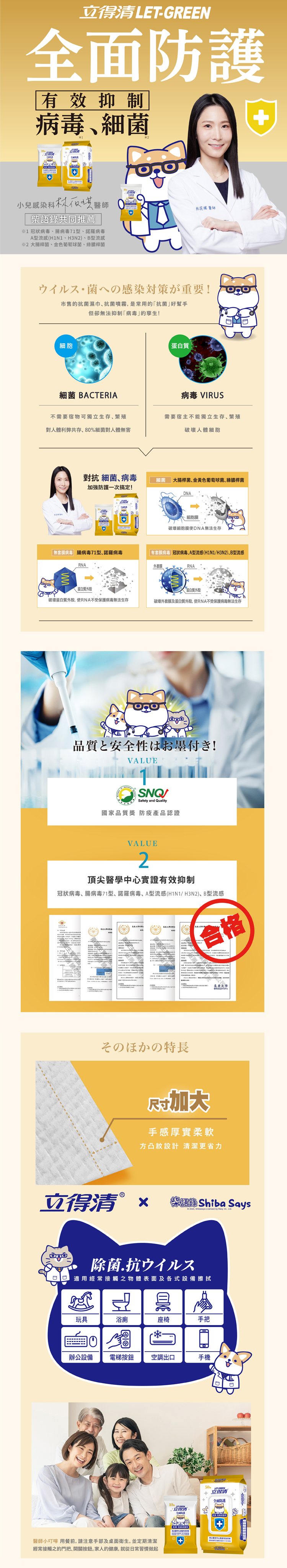 【立得清】柴語錄抗菌抗病毒濕巾 10抽x2包|全面防護|無酒精無香料|抗菌率99.9%