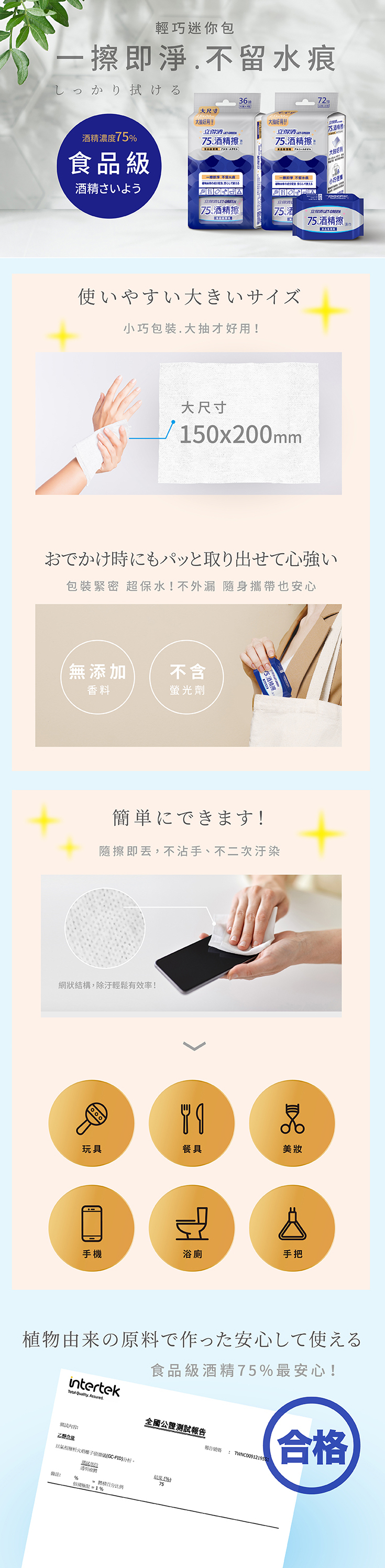 【立得清】75%食品級酒精迷你濕紙巾 12抽×6入組|隨身攜帶|抗菌清潔|無香料無螢光劑|家庭必備