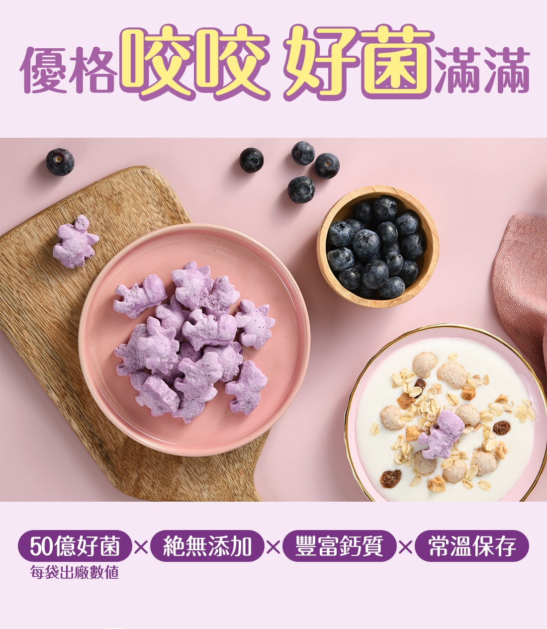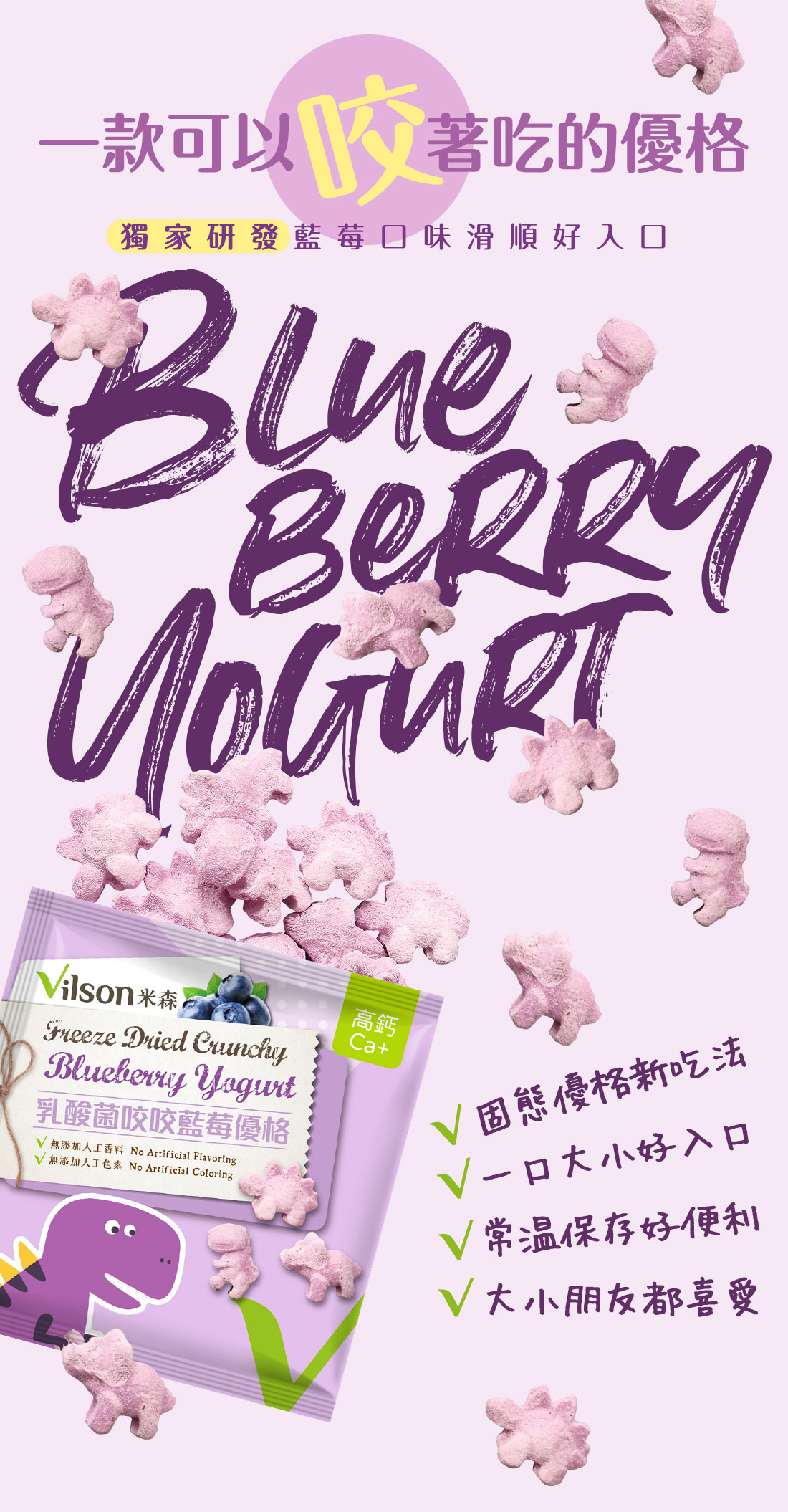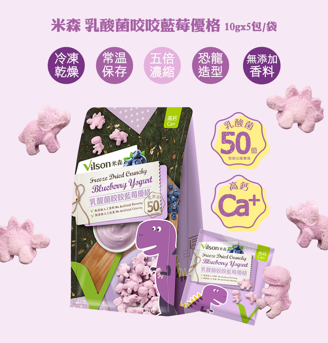 【米森 Vilson】乳酸菌咬咬藍莓優格 10gx5包|50億乳酸菌|5倍濃縮高鈣優格零食|藍莓風味|恐龍造型|無人工添加