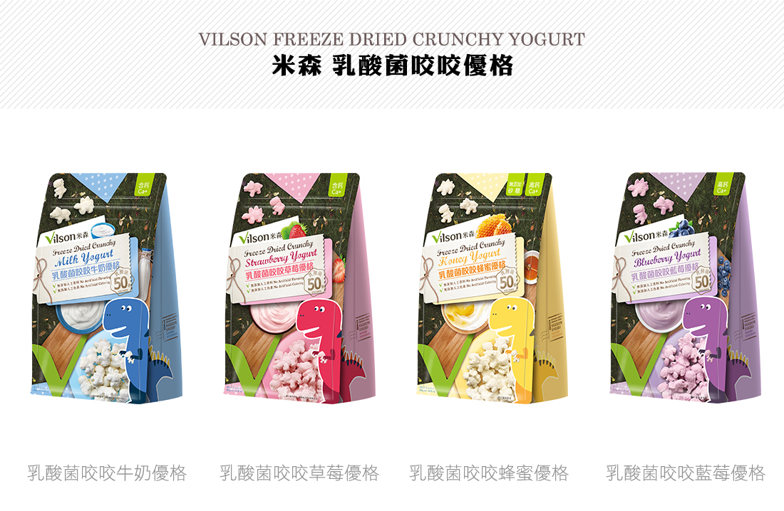 【米森 Vilson】乳酸菌咬咬藍莓優格 10gx5包|50億乳酸菌|5倍濃縮高鈣優格零食|藍莓風味|恐龍造型|無人工添加