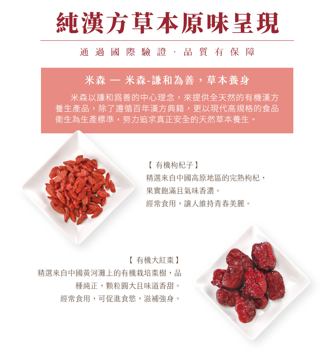 【米森 Vilson】有機漢方紅棗枸杞茶 6gx8包|有機級漢方茶飲|紅棗滋補/枸杞養生|無防腐劑人工添加|三角立體茶包|SGS檢驗安心