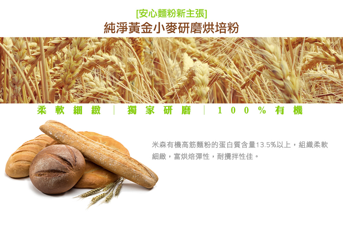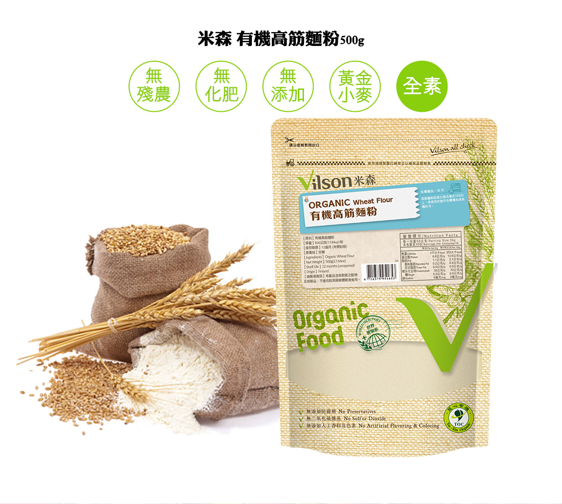【米森 Vilson】有機高筋麵粉/有機中筋麵粉/有機全麥麵粉|有機級認證|純淨黃金小麥研磨|無防腐劑人工添加