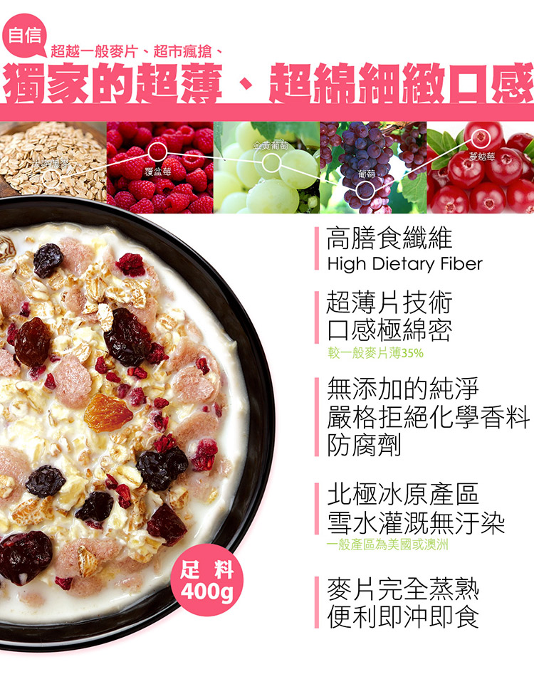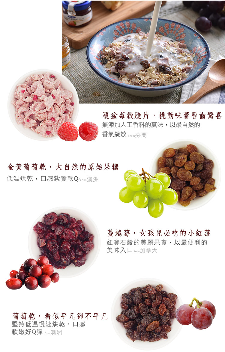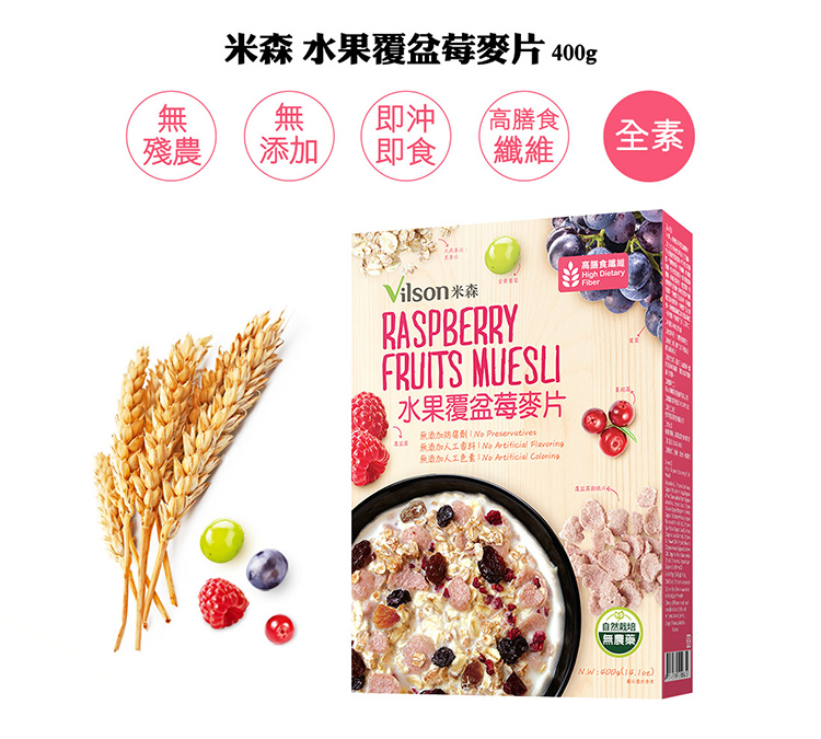 【米森 Vilson】水果覆盆莓麥片 400g|即沖即食|高纖營養|無添加安心早餐
