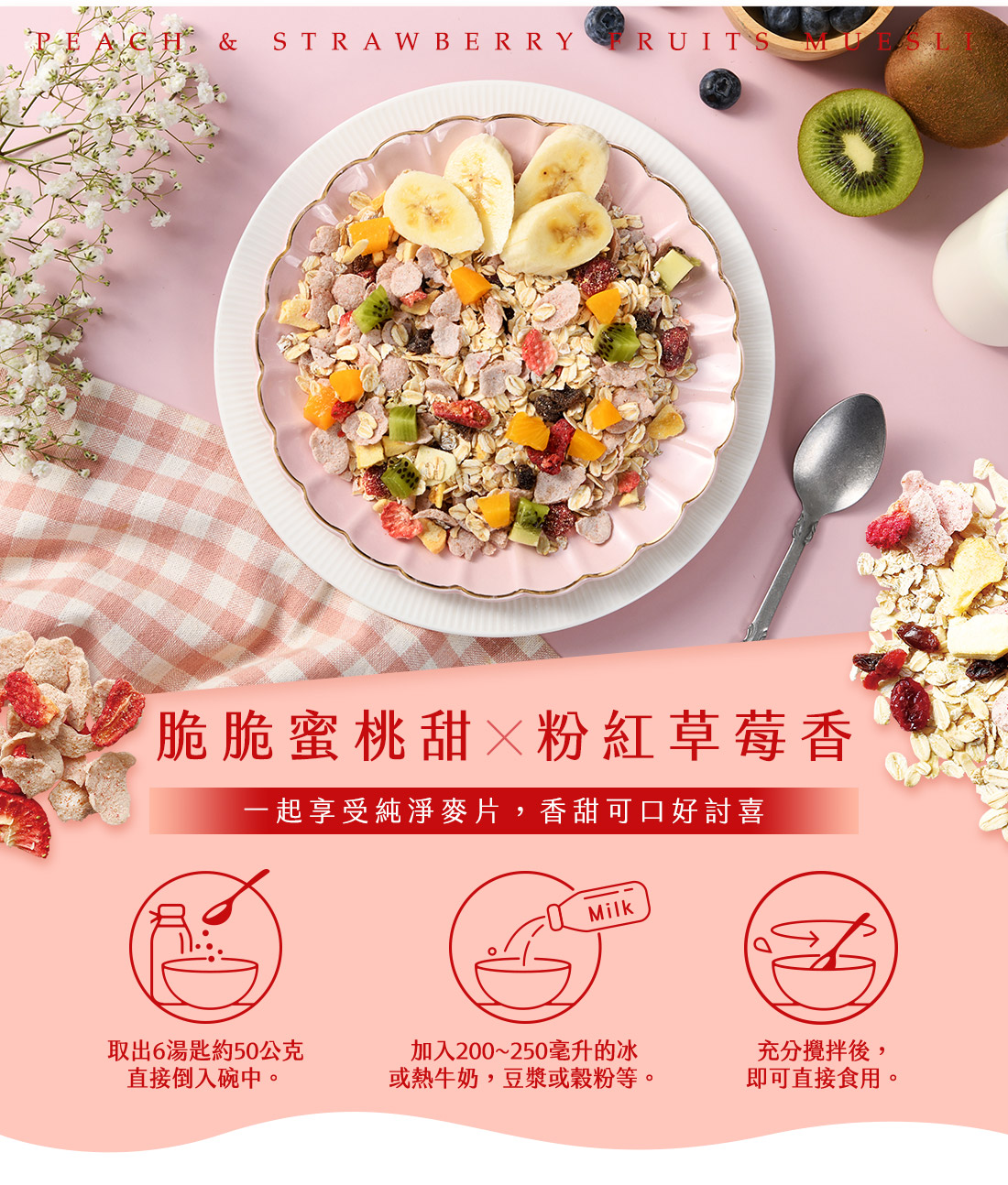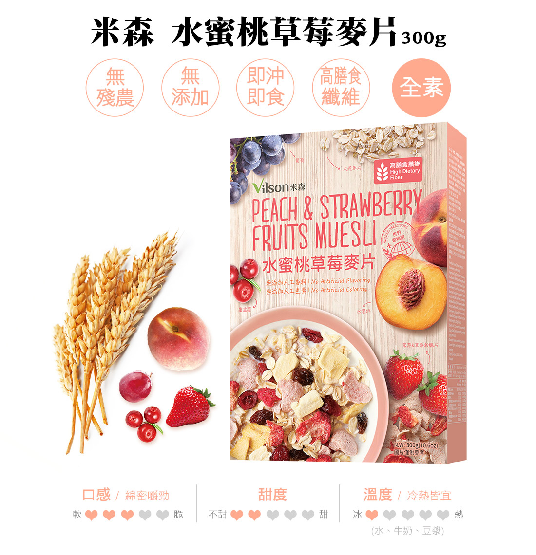 【米森 Vilson】水蜜桃草莓麥片 300g|即沖即食|高纖營養|無加糖水果片