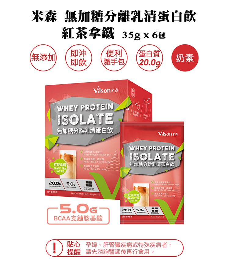 【米森 Vilson】無加糖分離乳清蛋白飲 紅茶拿鐵|高蛋白即沖即飲|低乳糖健身補給|BCAA支鏈胺基酸|無人工添加
