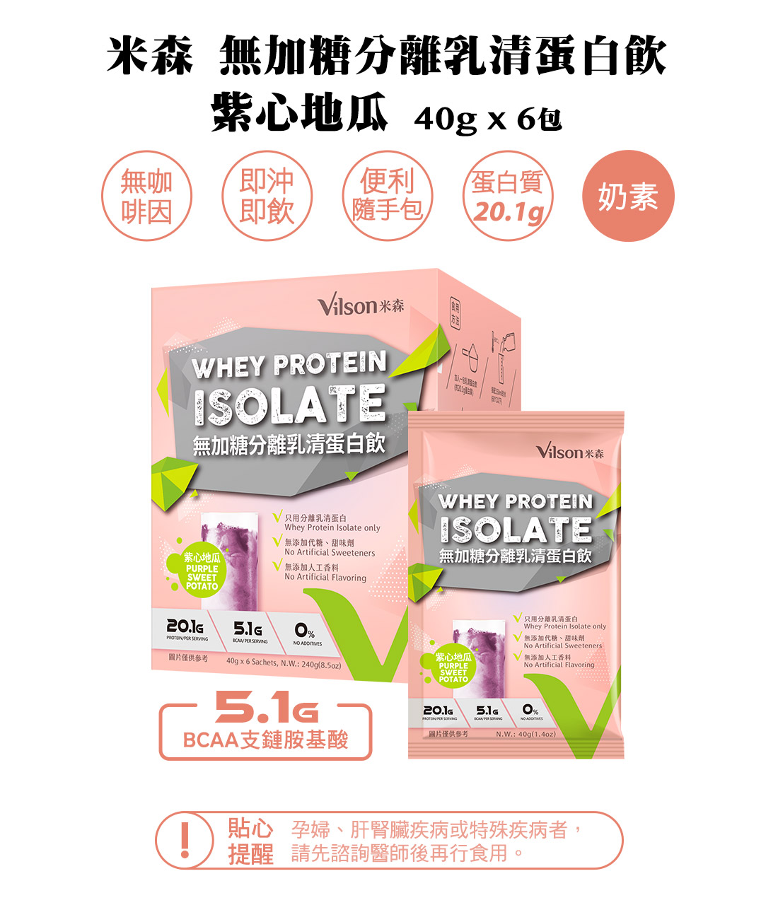 【米森 Vilson】無加糖分離乳清蛋白飲 紫心地瓜|高蛋白即沖即飲|隨身小包