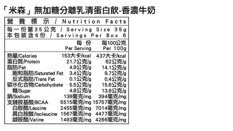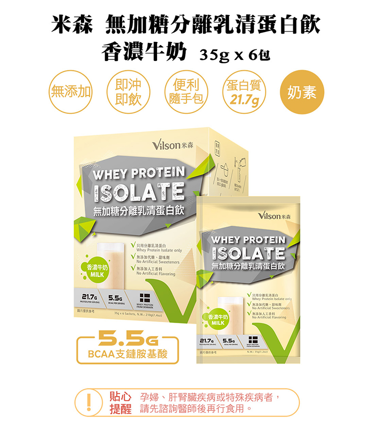 【米森 Vilson】無加糖分離乳清蛋白飲 香濃牛奶|高蛋白即沖即飲|低乳糖健身補給|BCAA支鏈胺基酸|無人工添加