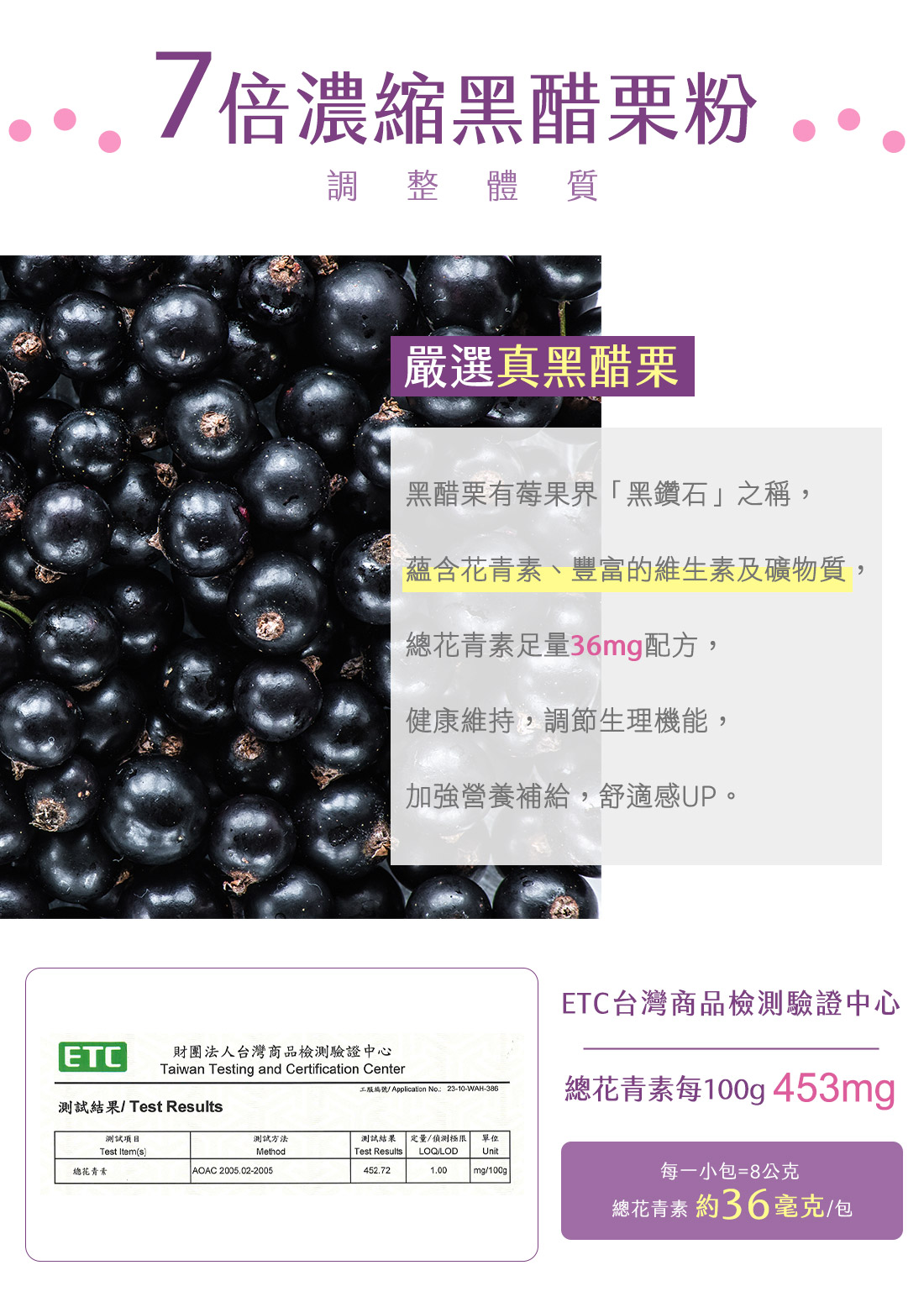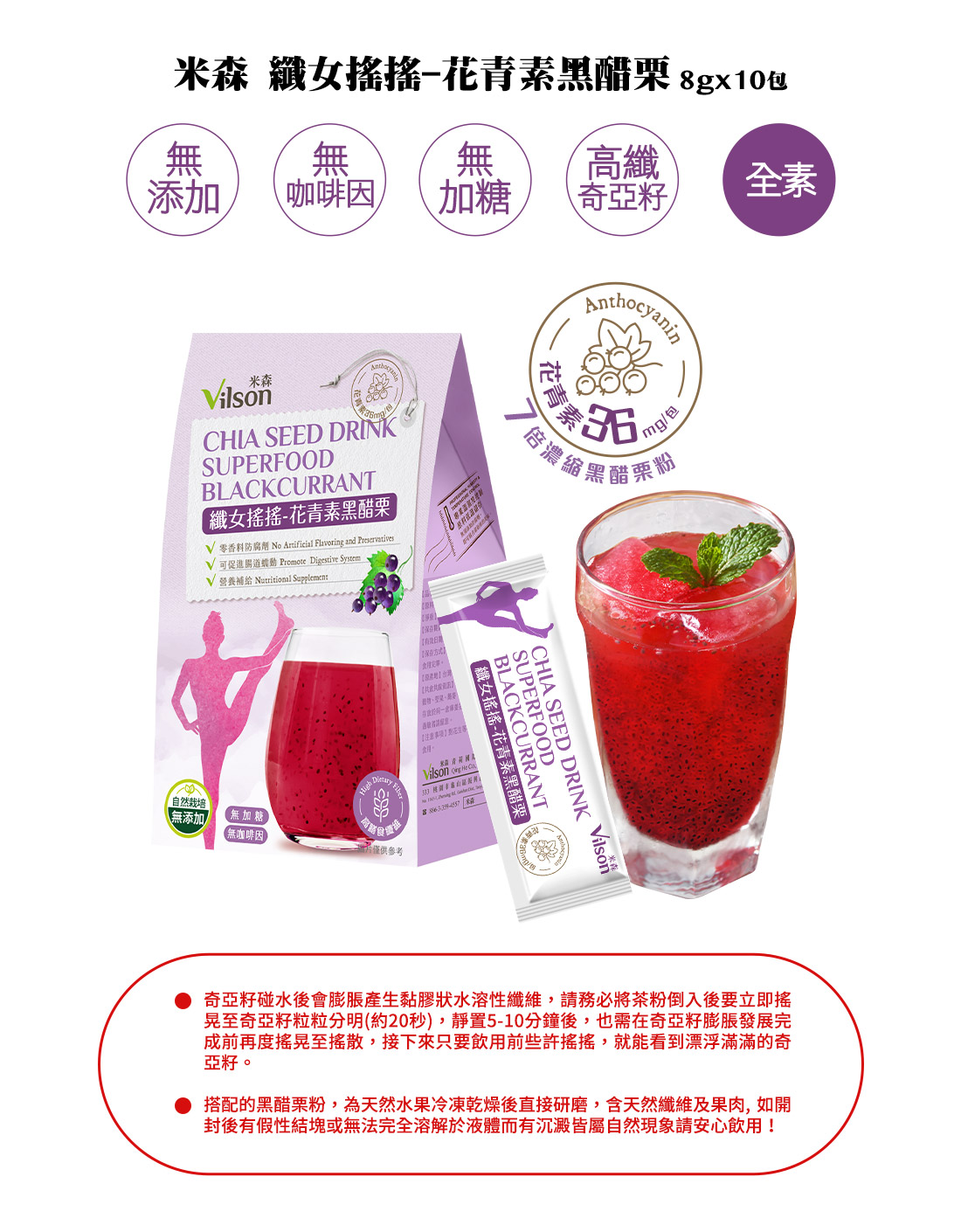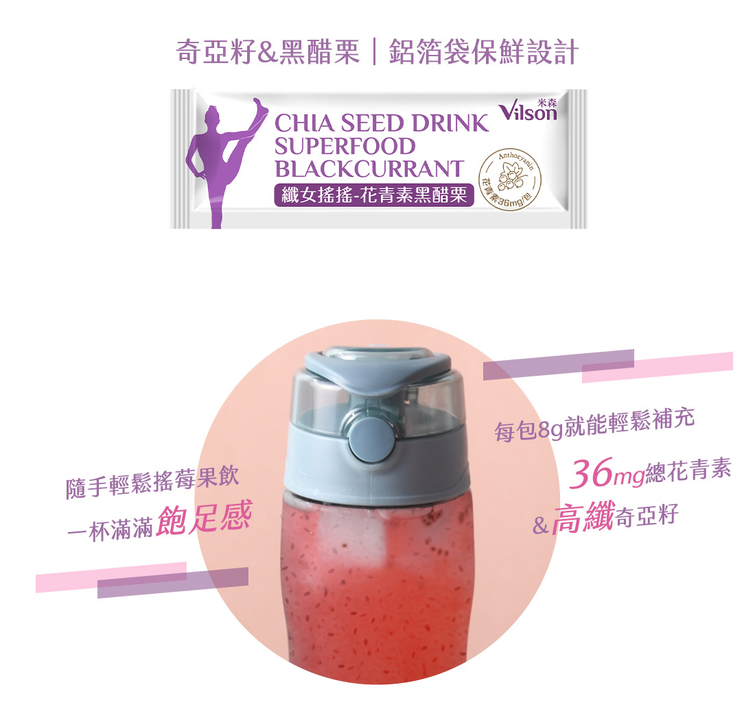 7倍濃縮黑醋栗,每份總花青素含36mg,加強營養補給