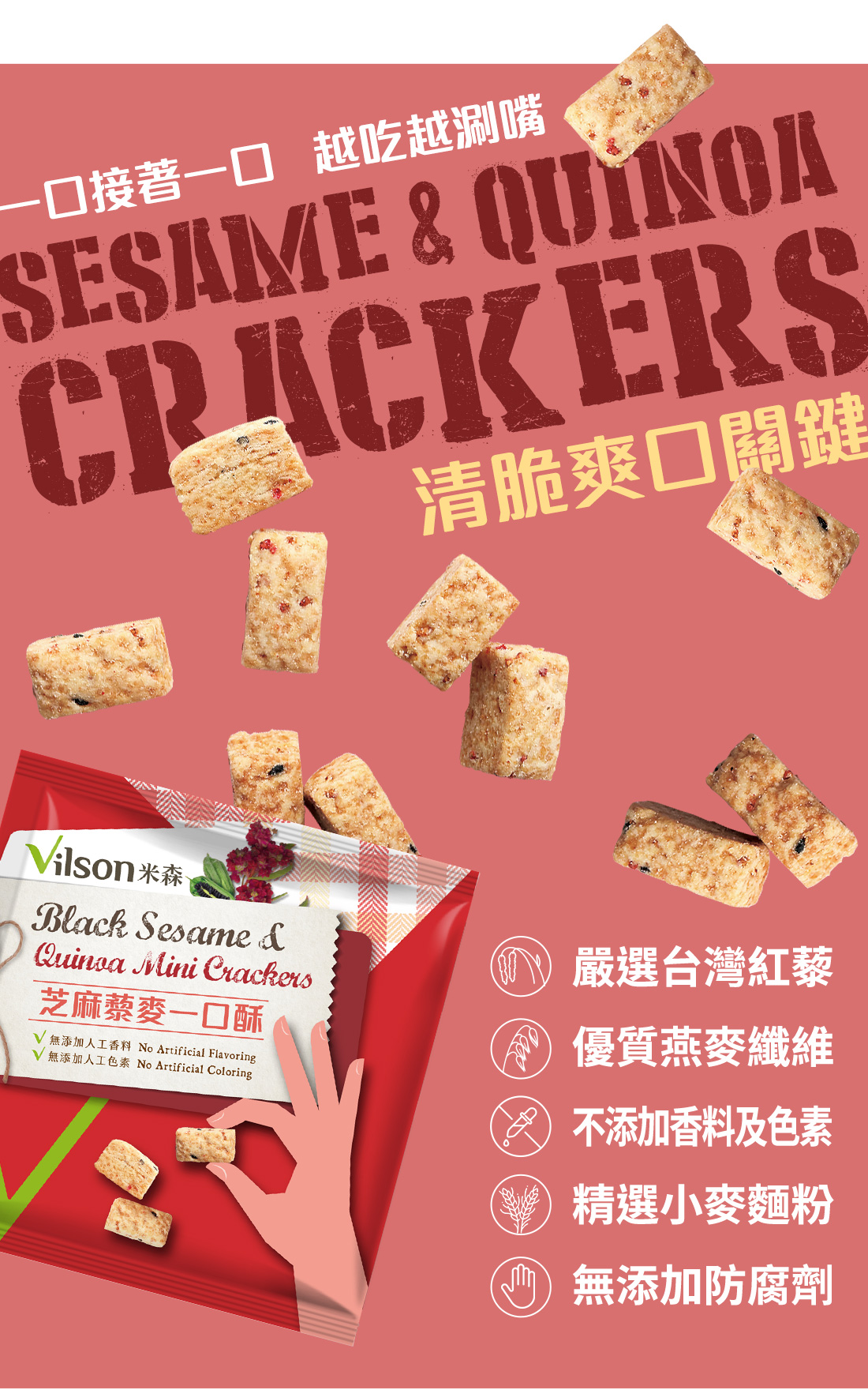 【米森 Vilson】芝麻藜麥一口酥20g×5包|低溫烘焙餅乾|台灣紅藜×香濃芝麻|無防腐劑無人工添加|全家共享零食