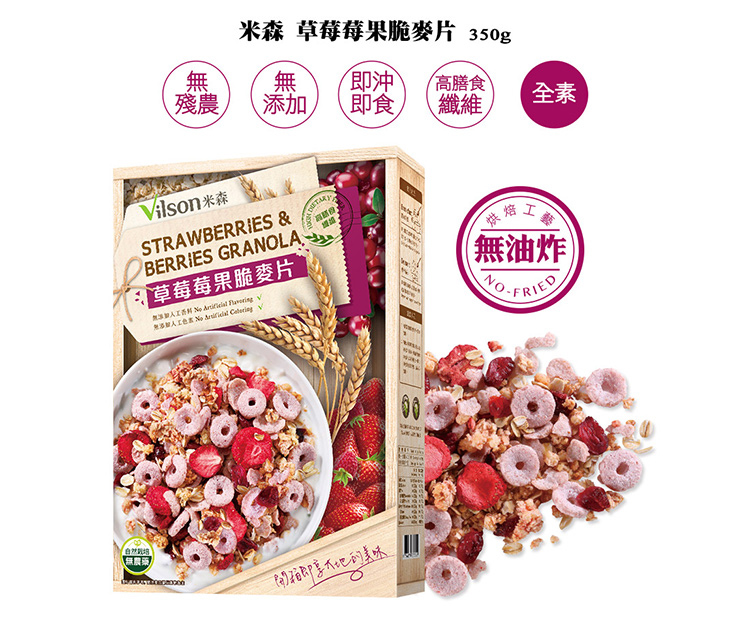 【米森 Vilson】草莓莓果脆麥片 350g|高纖酥脆|酸甜莓果風味|無添加更安心