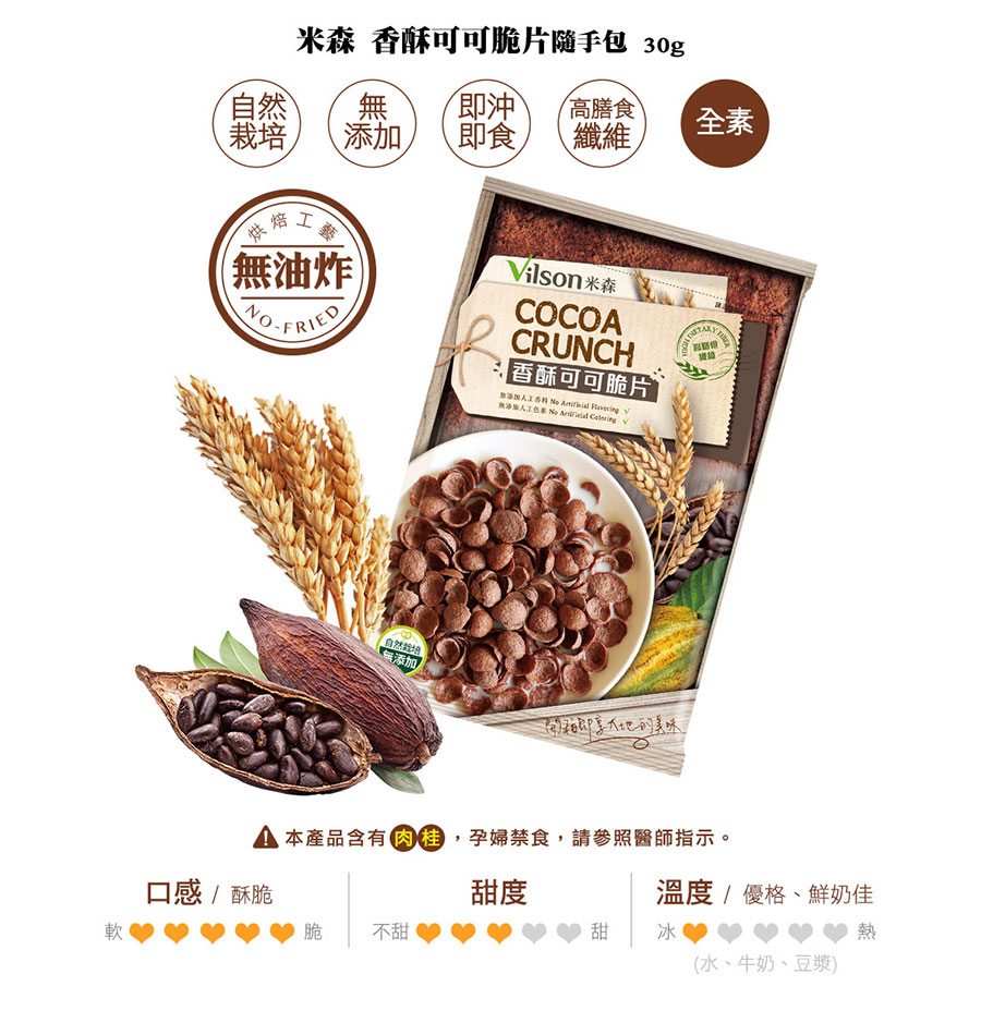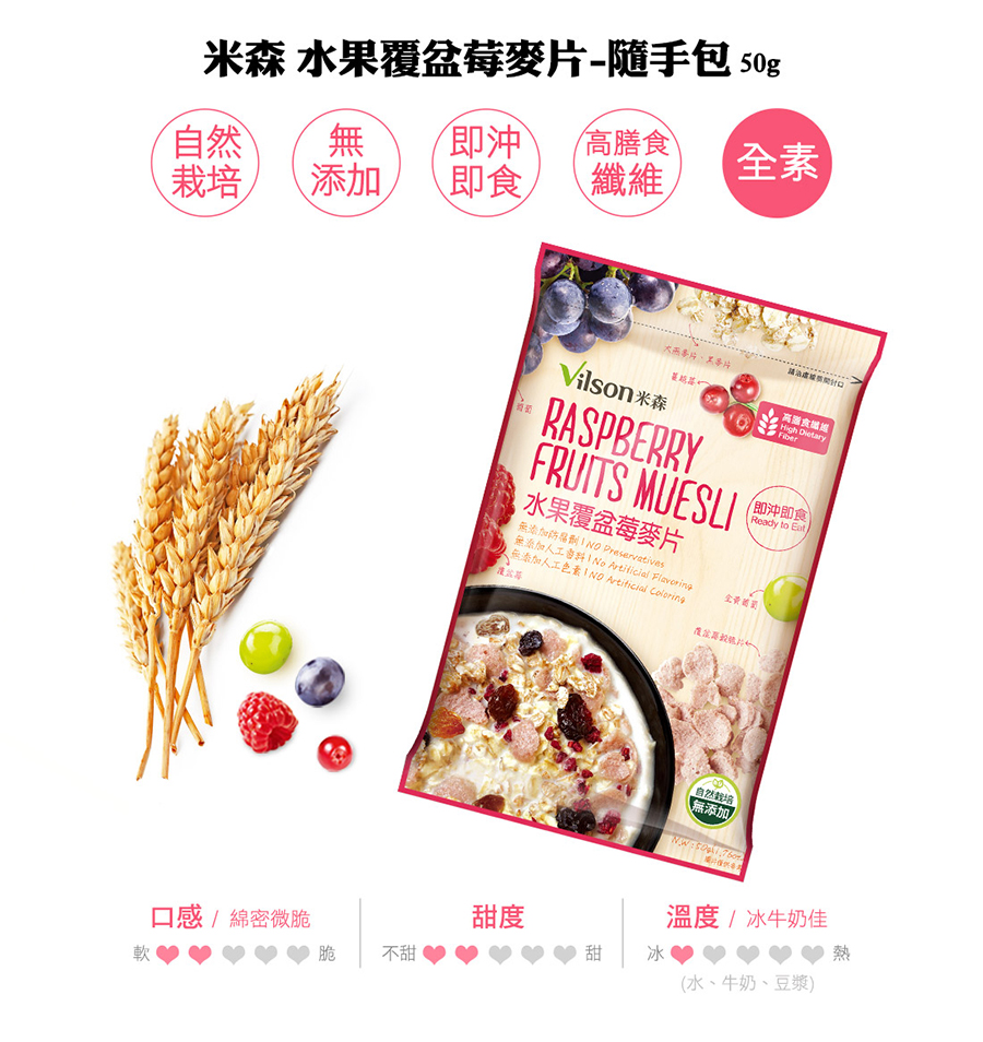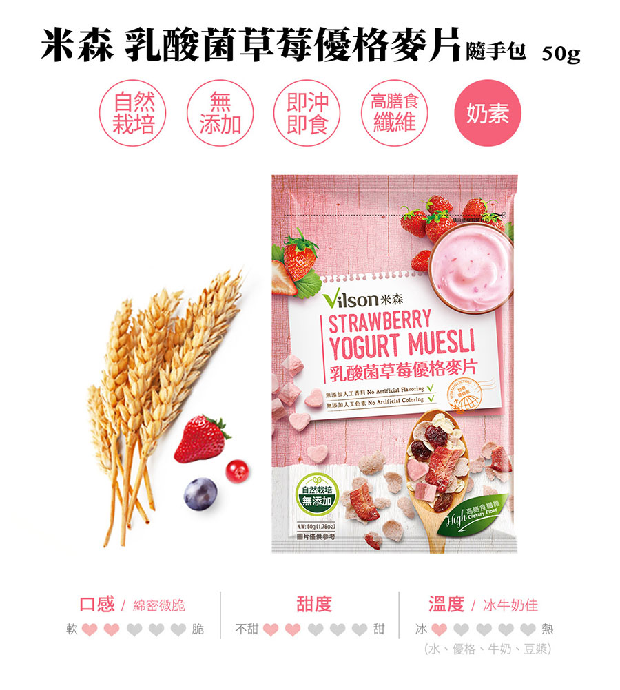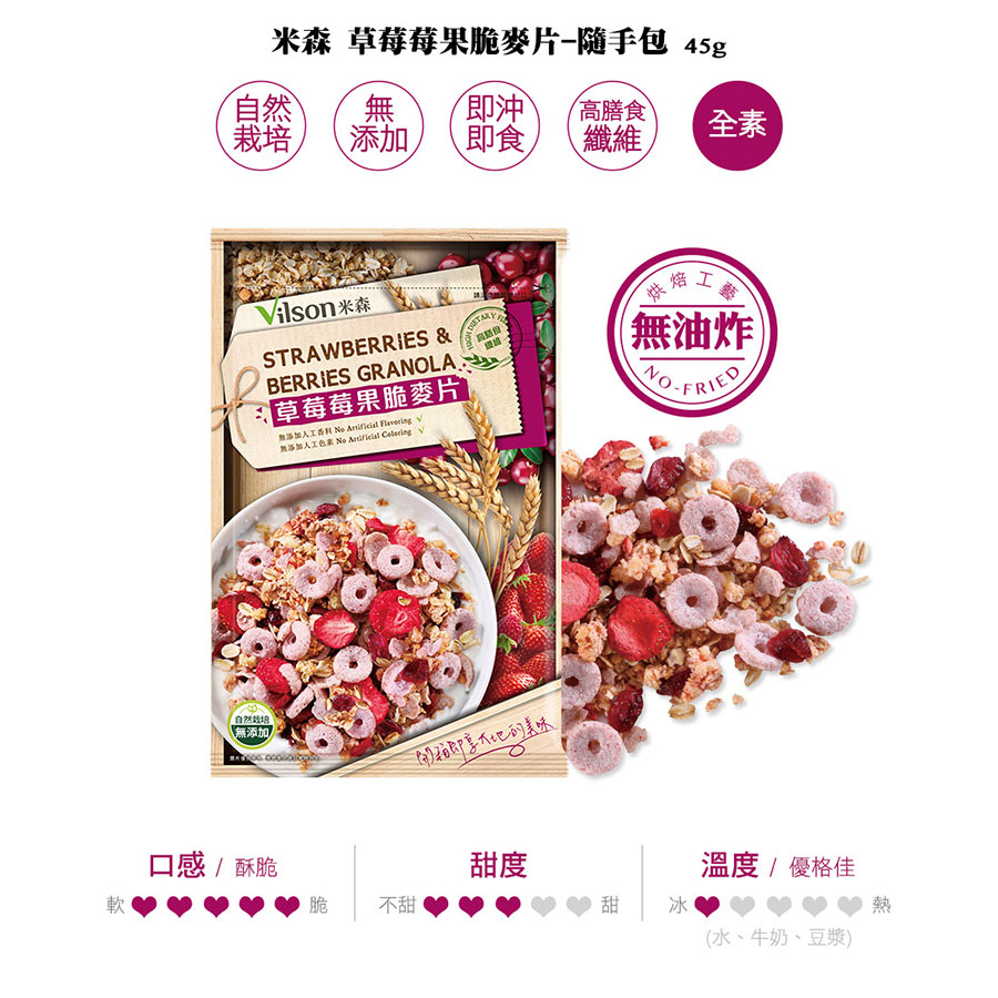 【米森 Vilson】隨手包麥片|BC益生菌草莓/BC益生菌可可/水果覆盆莓/香酥可可脆片/乳酸菌草莓優格/草莓莓果脆麥片|即食早餐|高纖穀片