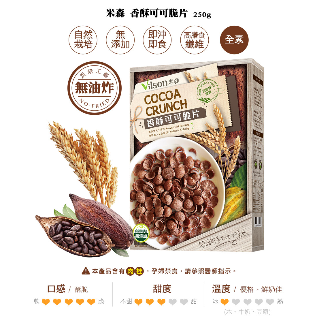 【米森 Vilson】香酥可可脆片 250g|高纖可可麥片|非油炸酥脆口感