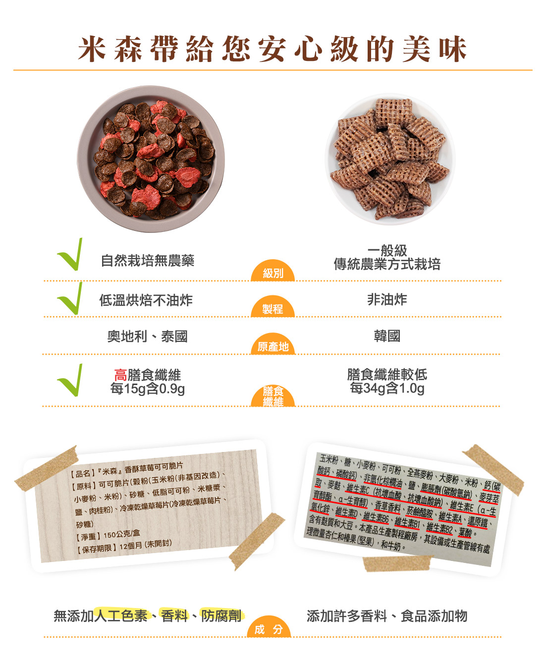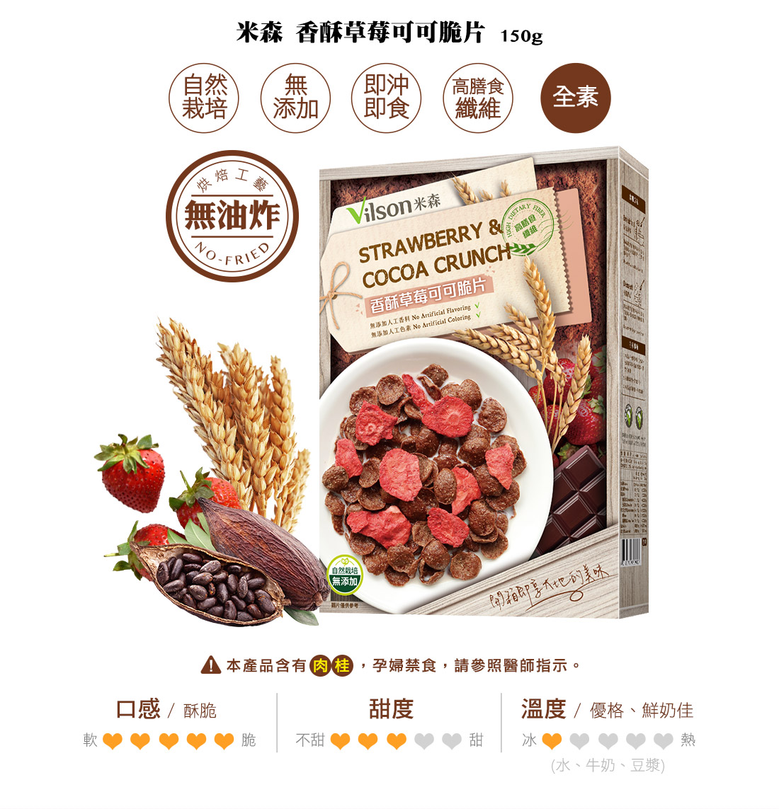 【米森 Vilson】香酥草莓可可脆片 150g|高纖可可麥片|新鮮草莓添加|健康點心