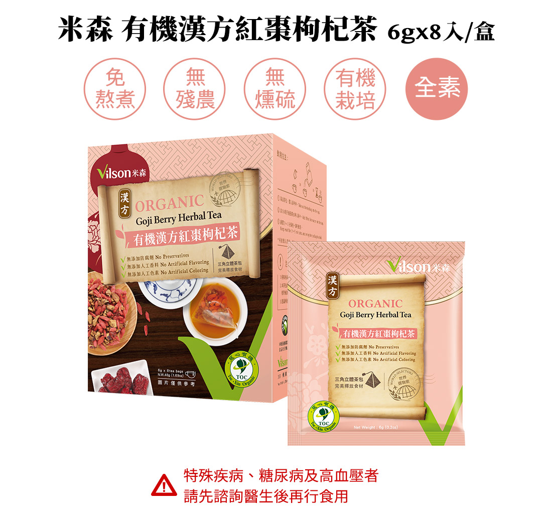 【米森 Vinson】有機茶包系列/有機漢方紅棗枸杞茶/南非國寶茶/蘋果覆盆莓茶/有機漢方養氣茶