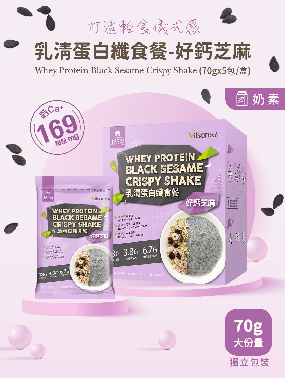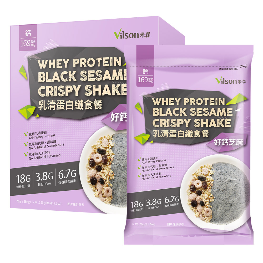 【米森 vilson】乳清蛋白纖食餐 好鈣芝麻 70g x 5包|18g高蛋白 × 6.7g膳食纖維 × 無添加真食配方