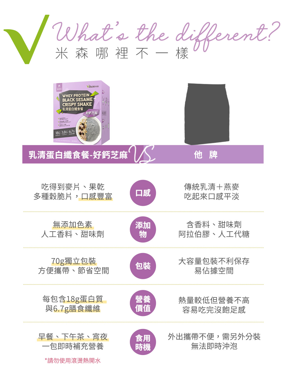 18g 高品質乳清蛋白,支持日常營養補充、提升飽足感