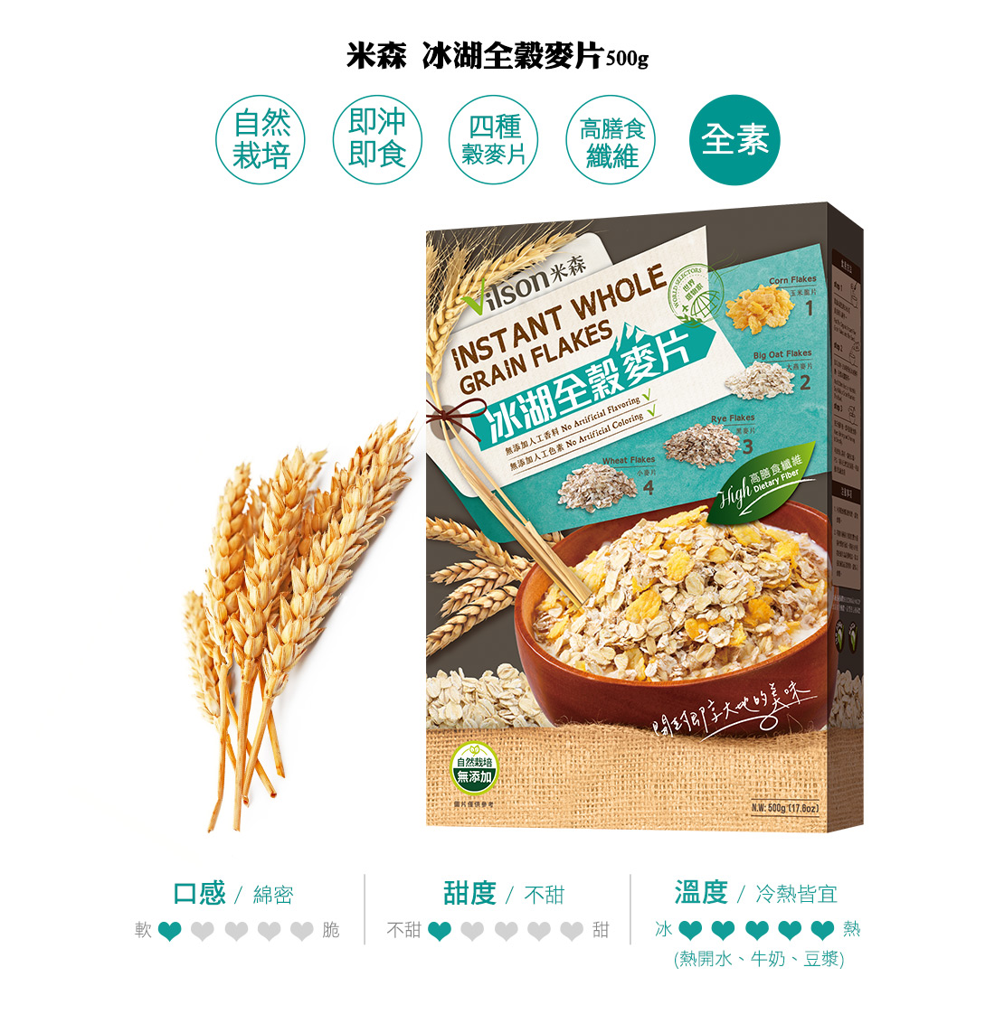 【米森 vilson】冰湖全穀麥片 500g 即沖即食 高纖營養 經典麥片 安心級 無防腐劑 無人工香料色素