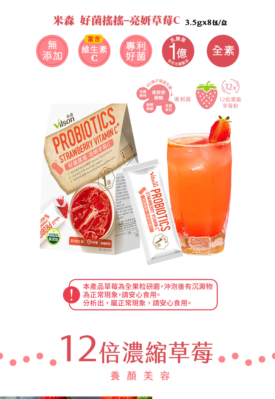 【米森 vilson】好菌搖搖系列|亮妍草莓C 3.5g×8包/盒/有機大麥若葉青汁 3g×14包/盒/私密蔓越莓茶 4g×10包/盒/有機兒茶素綠茶 2g×14包/盒/有機冰萃黑咖啡 3g×14包/盒