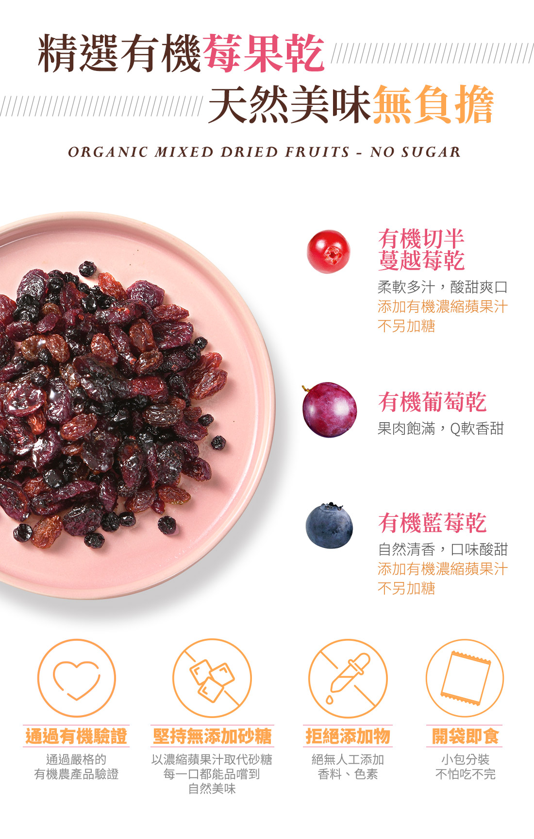 【米森 vilson】有機無加糖蔓越莓乾/有機無加糖什錦莓果乾 無添加砂糖 零食 果乾 隨手包 健康無負擔
