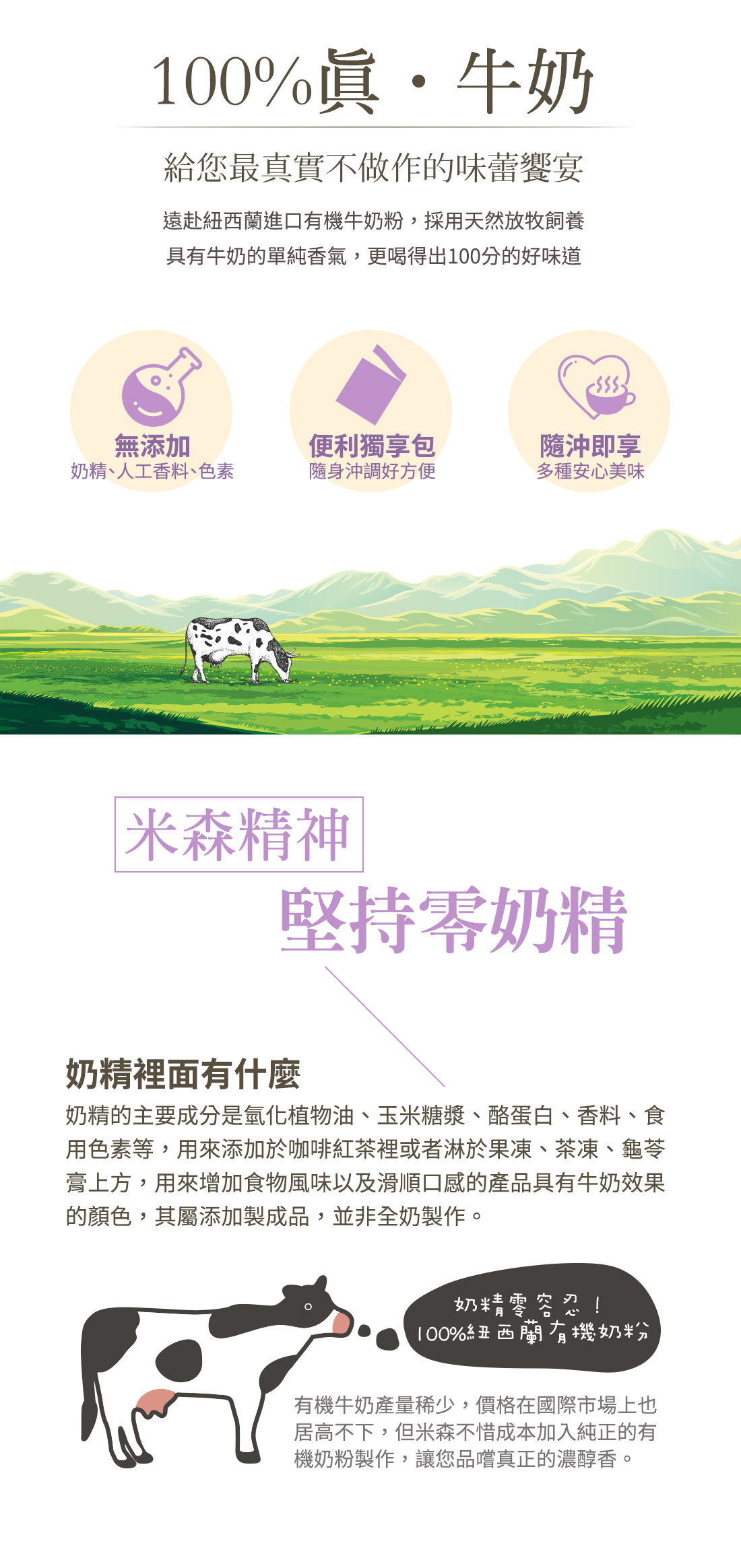 紐西蘭自然放牧飼養的牛隻產出的有機純奶粉