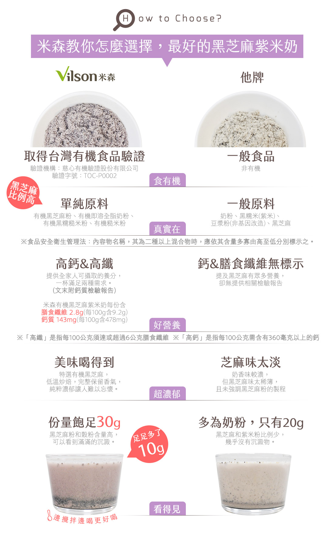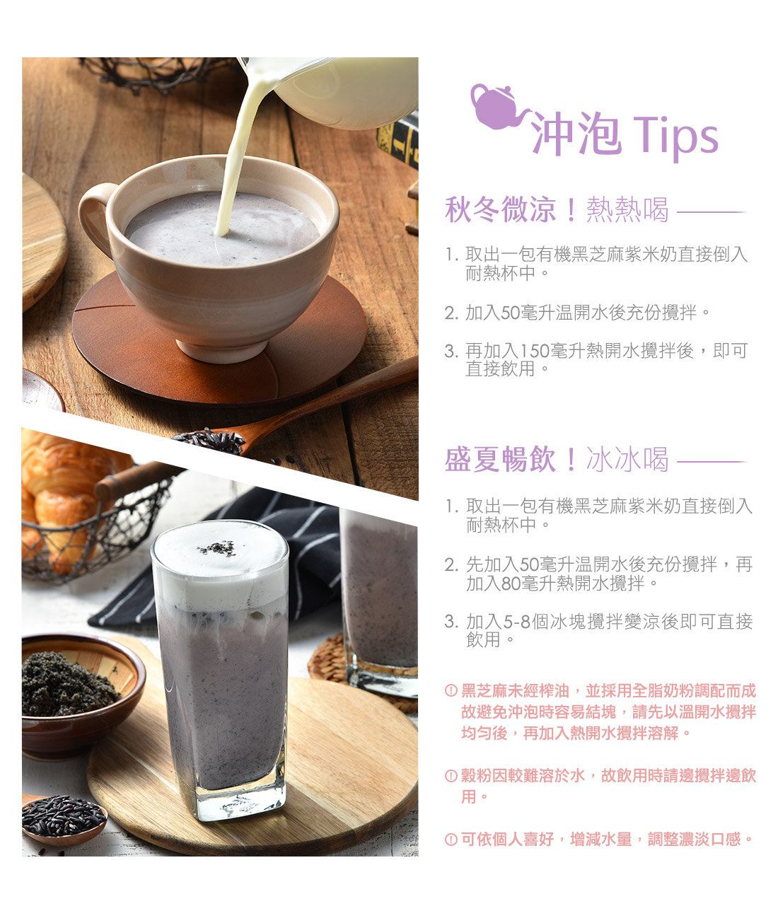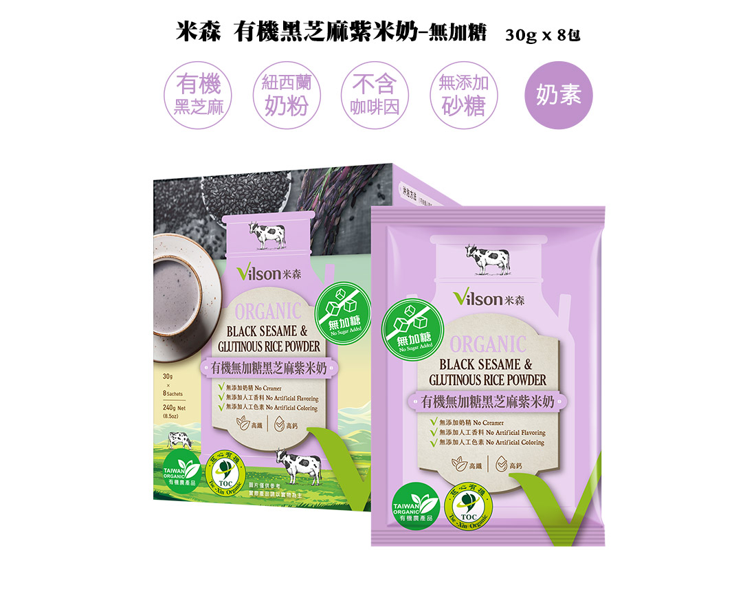 【米森vilson】有機黑芝麻紫米奶 無加糖 30g×8包/盒|濃醇黑芝麻 有機純奶粉 無人工香料防腐劑