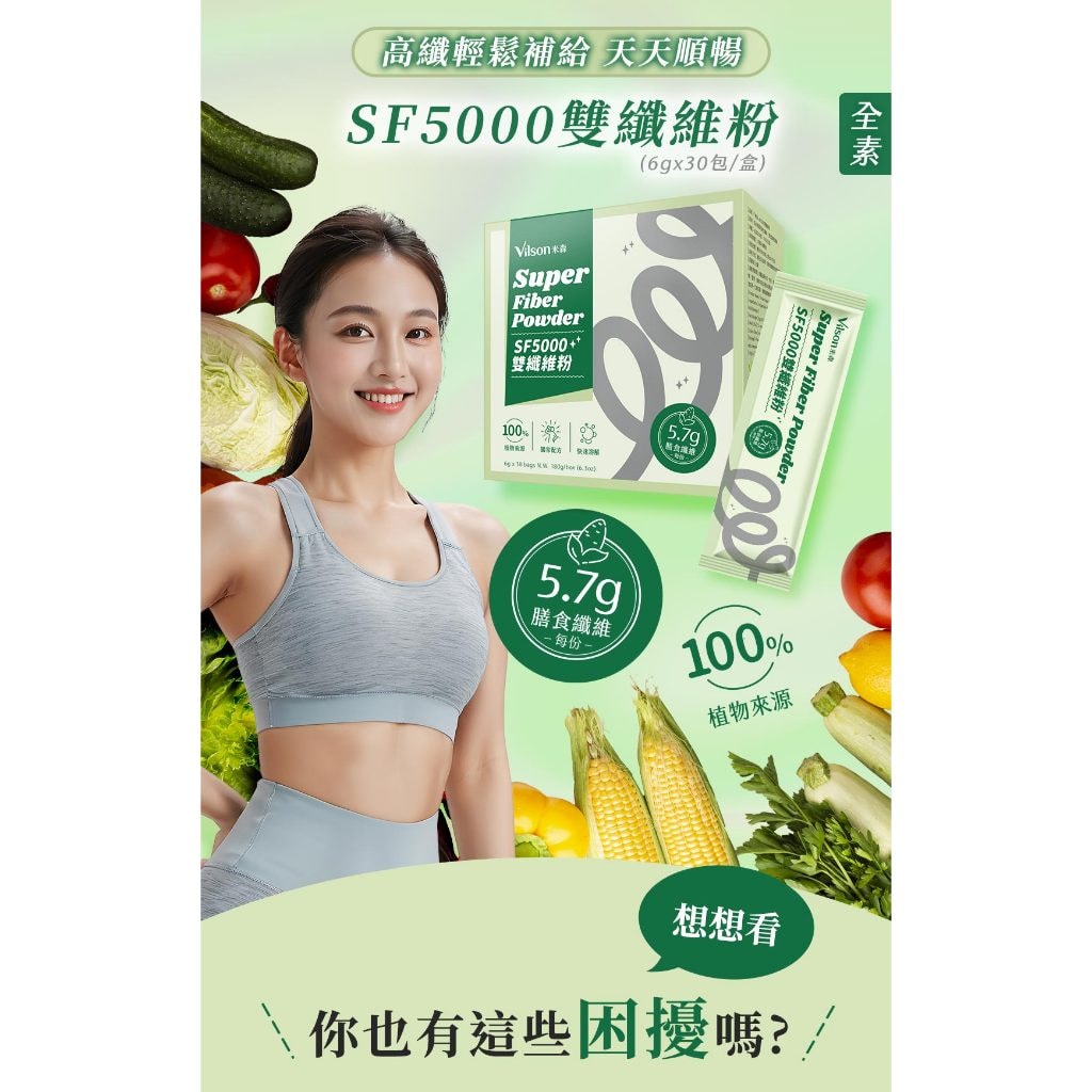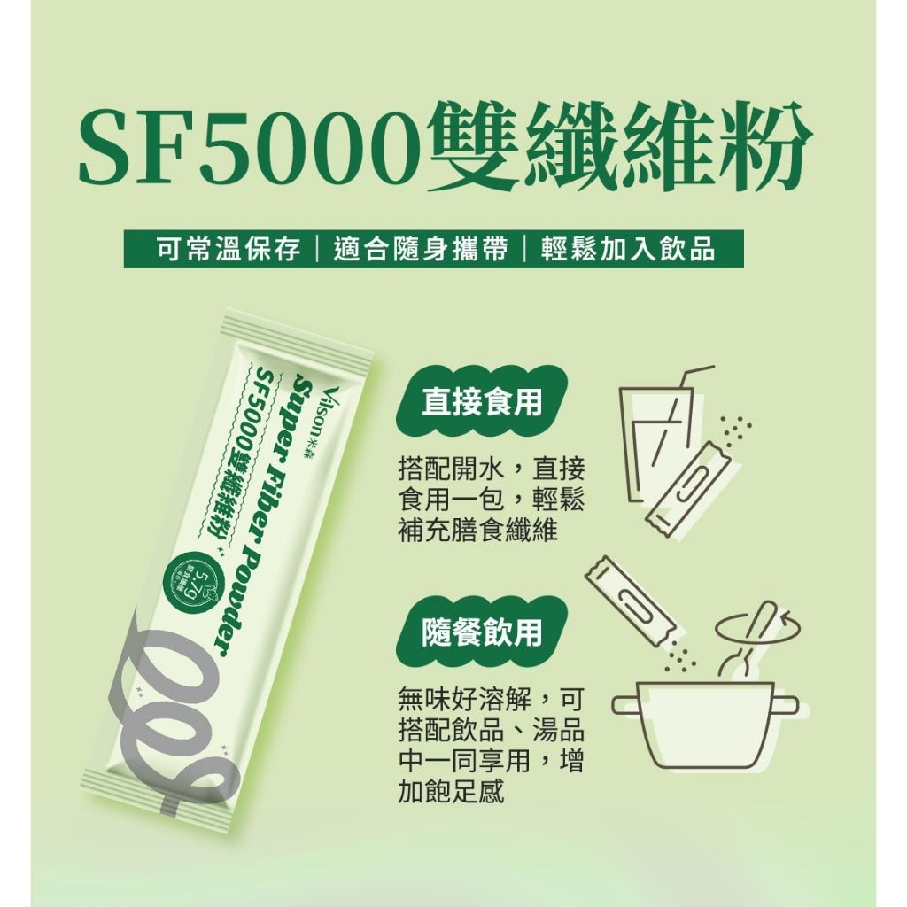 【米森 vilson】SF5000雙纖維粉 6gx30包|專利Synergy 1 強化型菊苣纖維|日本Fibersol-2可溶性纖維 × 輕鬆融入各類飲品