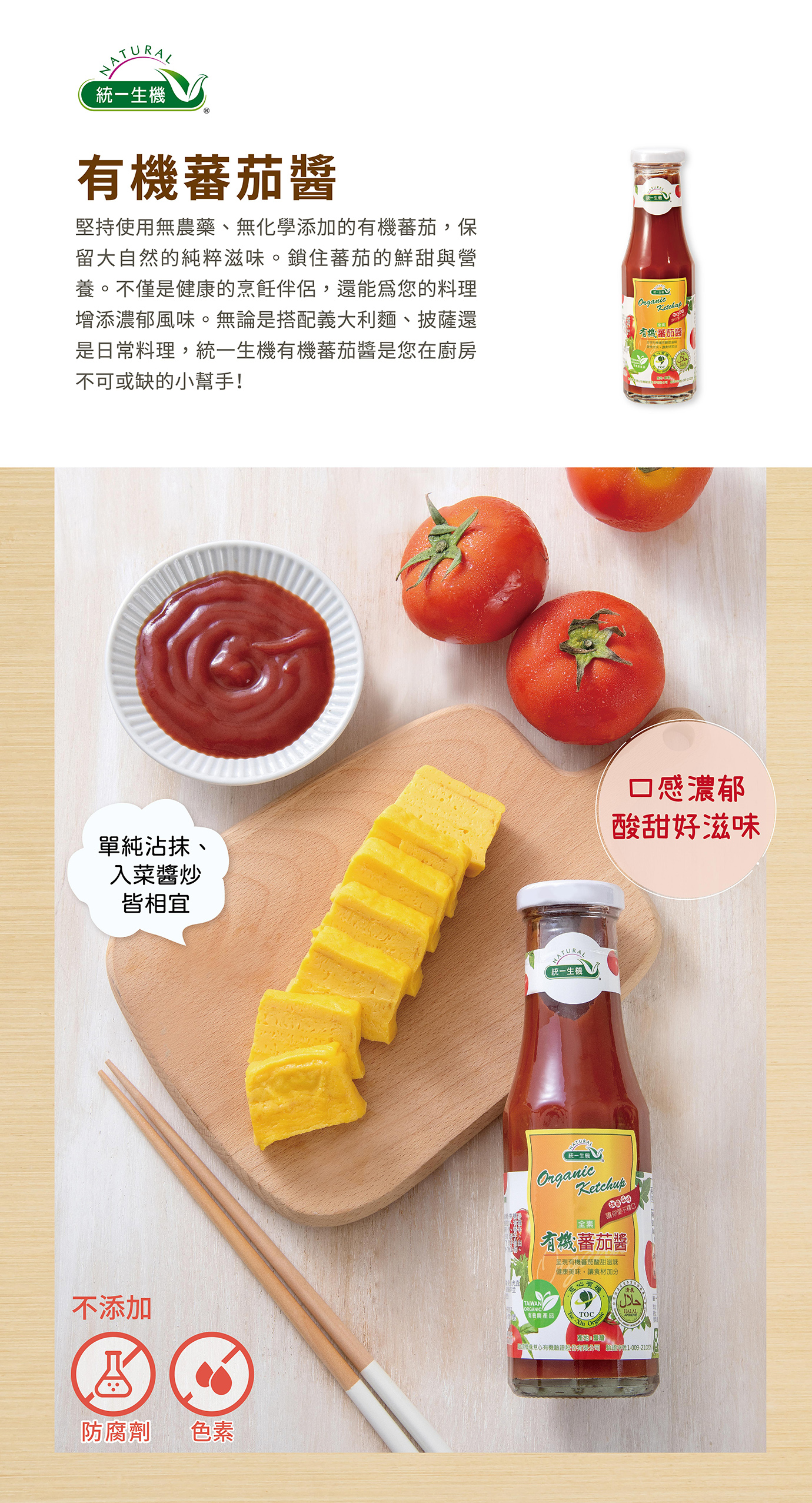 【統一生機】有機番茄醬 270g|無添加防腐劑色素|富含茄紅素|廚房必備料理醬 效期:2025年12月