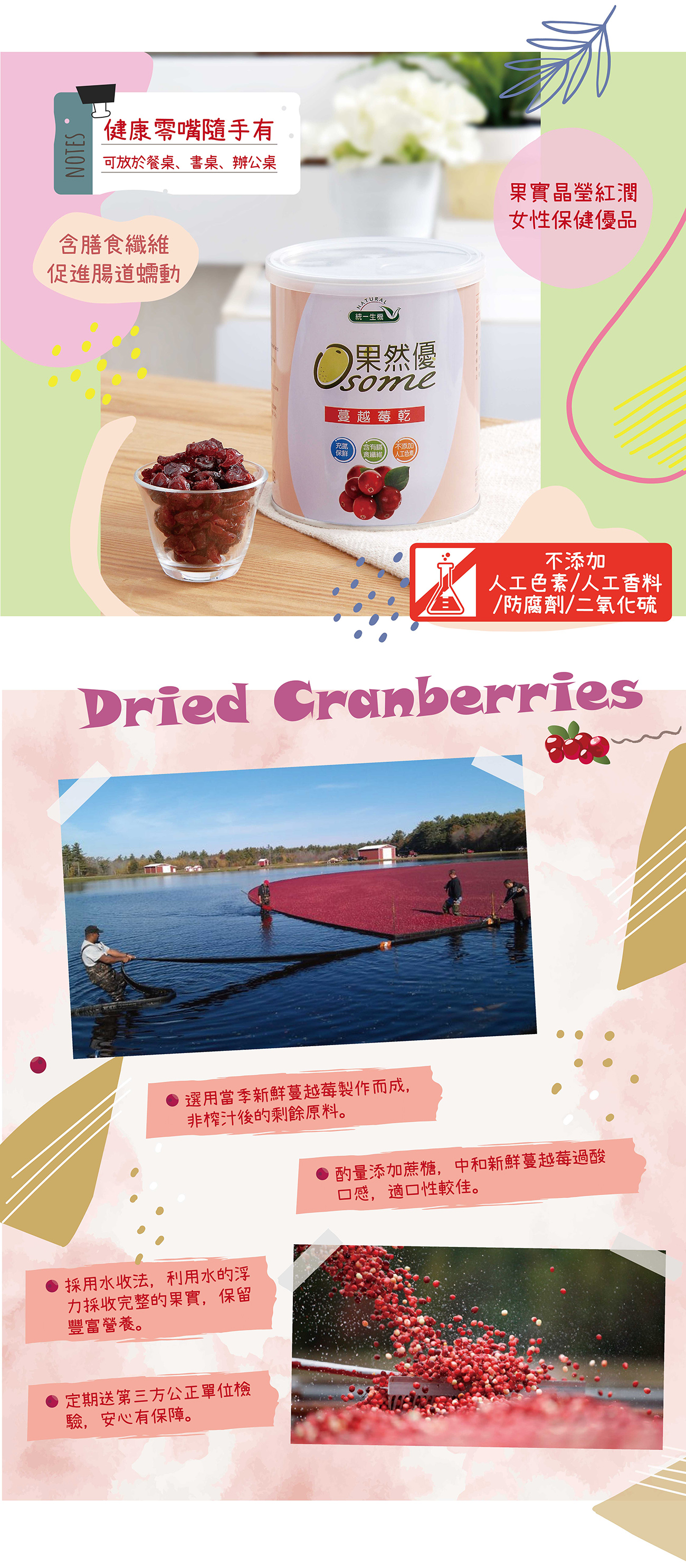 • 蔓越莓乾酸甜平衡,搭配堅果更耐吃不膩