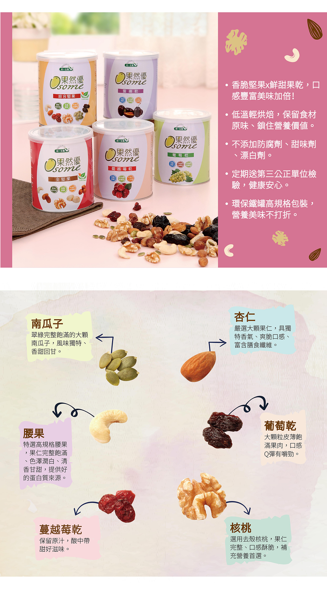 • 低溫輕烘焙原味堅果,保留天然香氣與營養