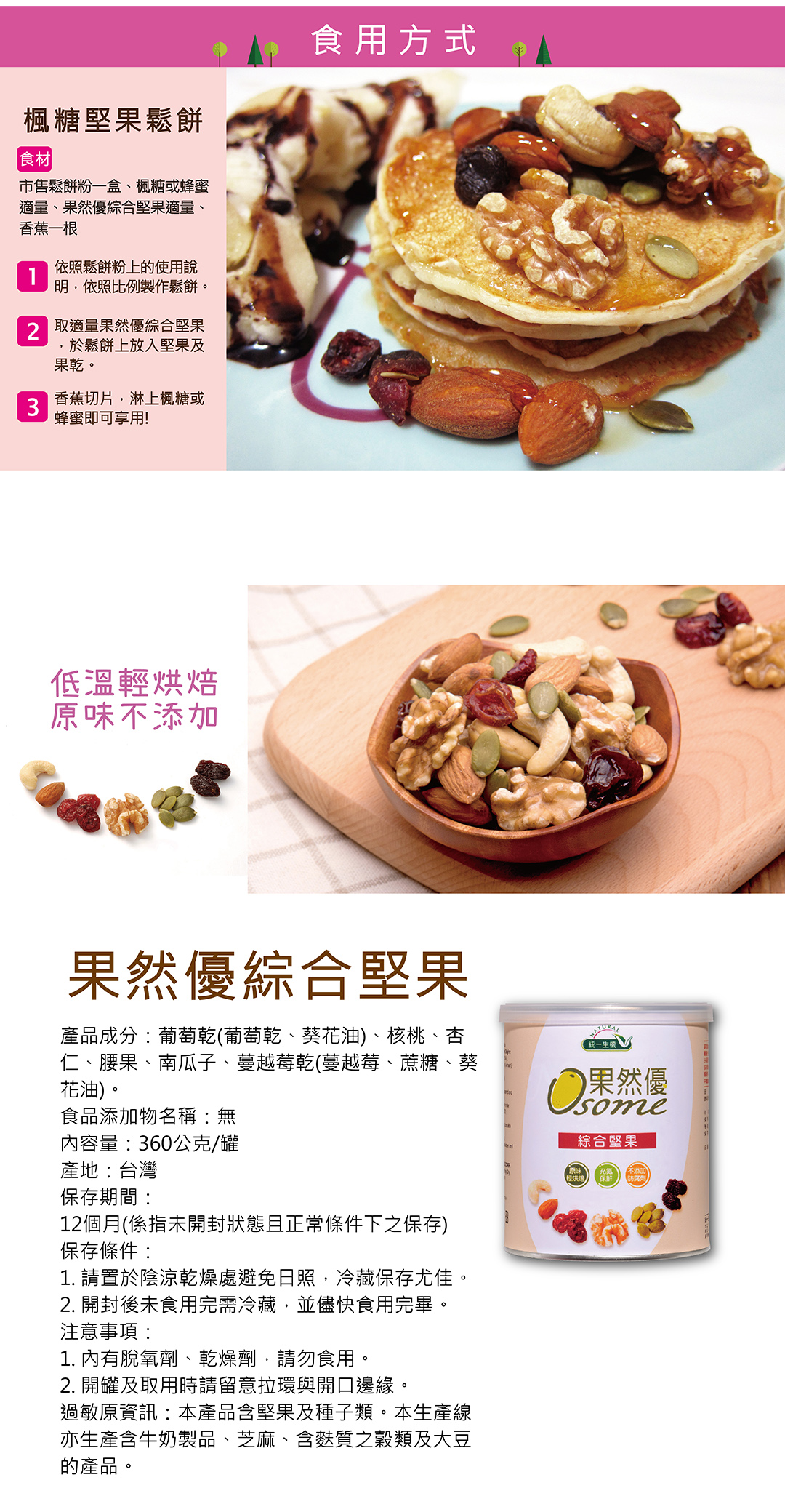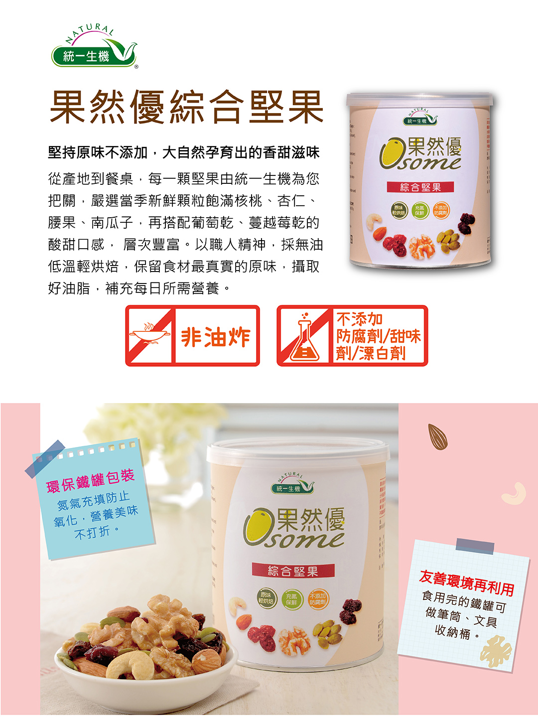 【統一生機】果然優綜合堅果 360g 罐裝|低溫輕烘焙|原味無添加|滋補強身 增強體力