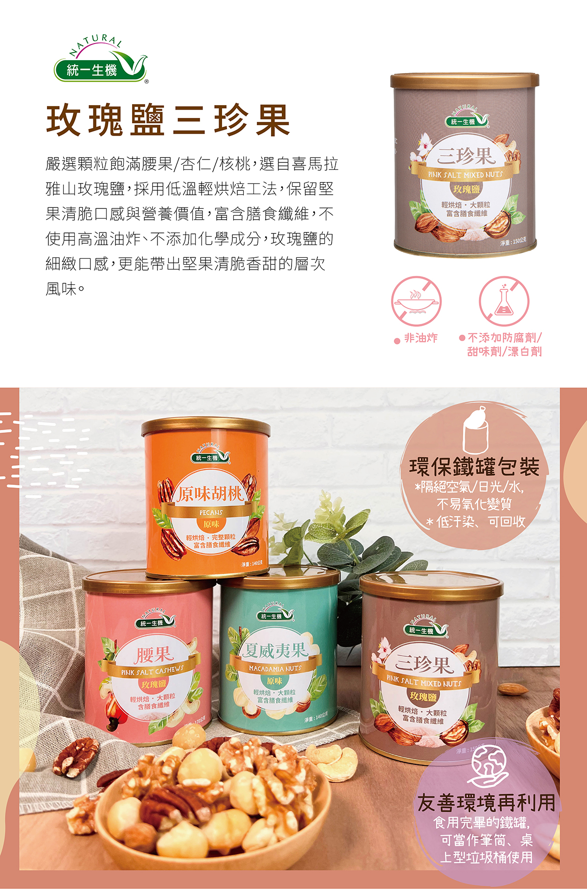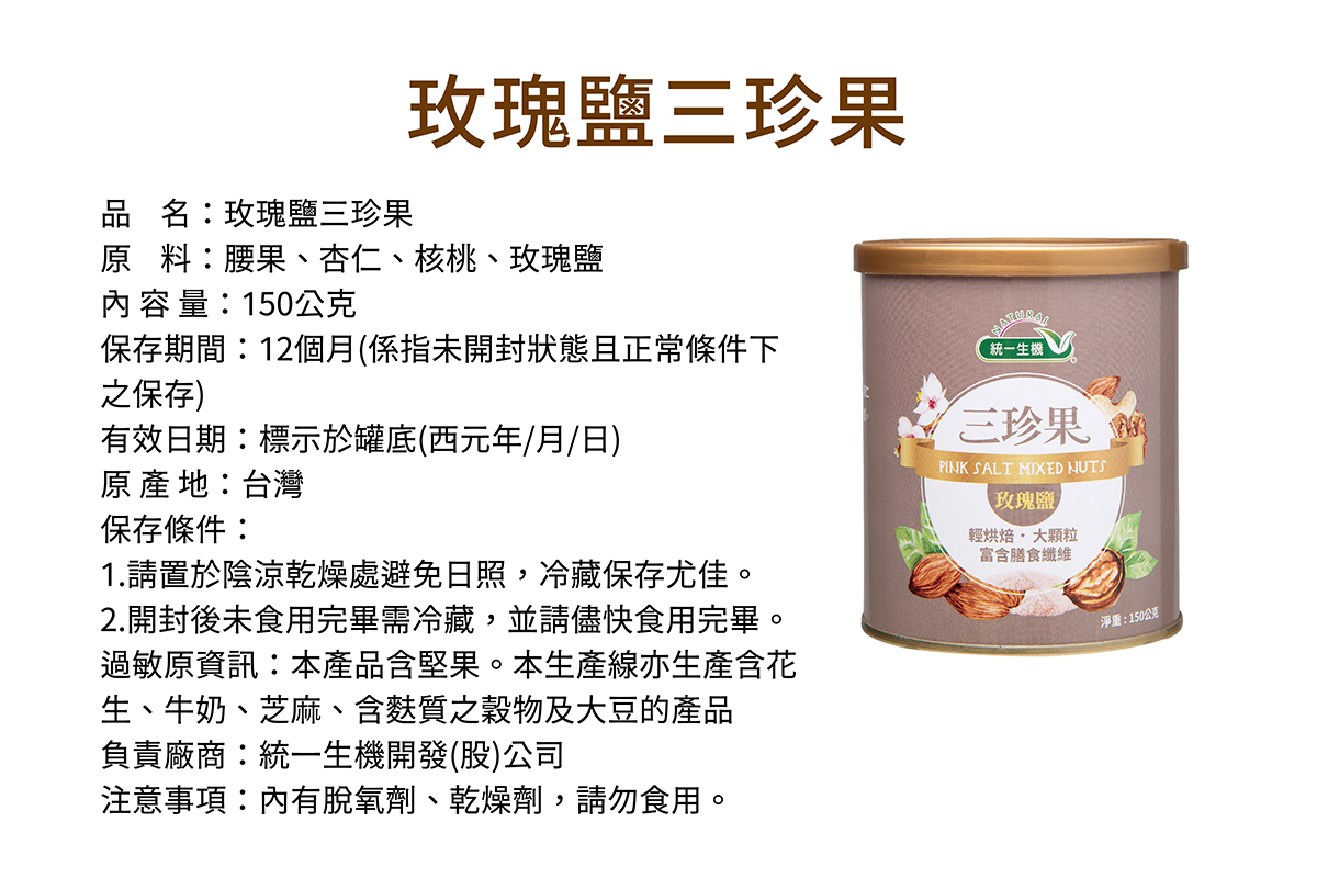 【統一生機】玫瑰鹽三珍果 150g|低溫輕烘焙|天然無添加|健康堅果零食