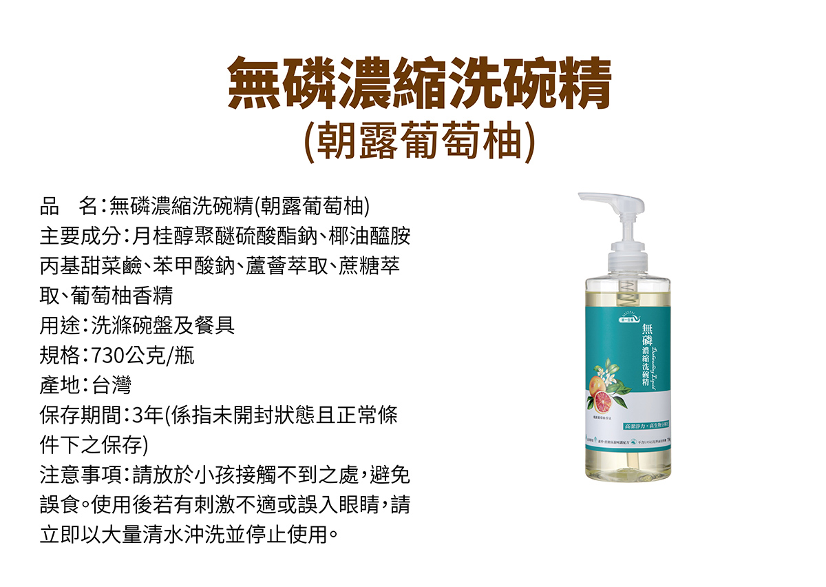 【統一生機】萊可淨 無磷濃縮洗碗精 730g|朝露柑橘香|環保安心無添加