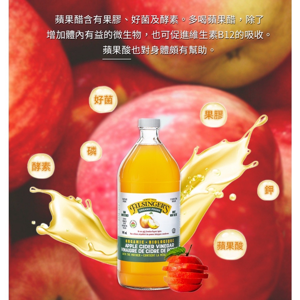 【自然思維】Filsingers 有機蘋果醋(未過濾)945ml|加拿大 1953 年有機農場|緩慢壓榨長期發酵 × 未過濾富含酵素|無添加糖 × 無防腐劑|加拿大有機認證