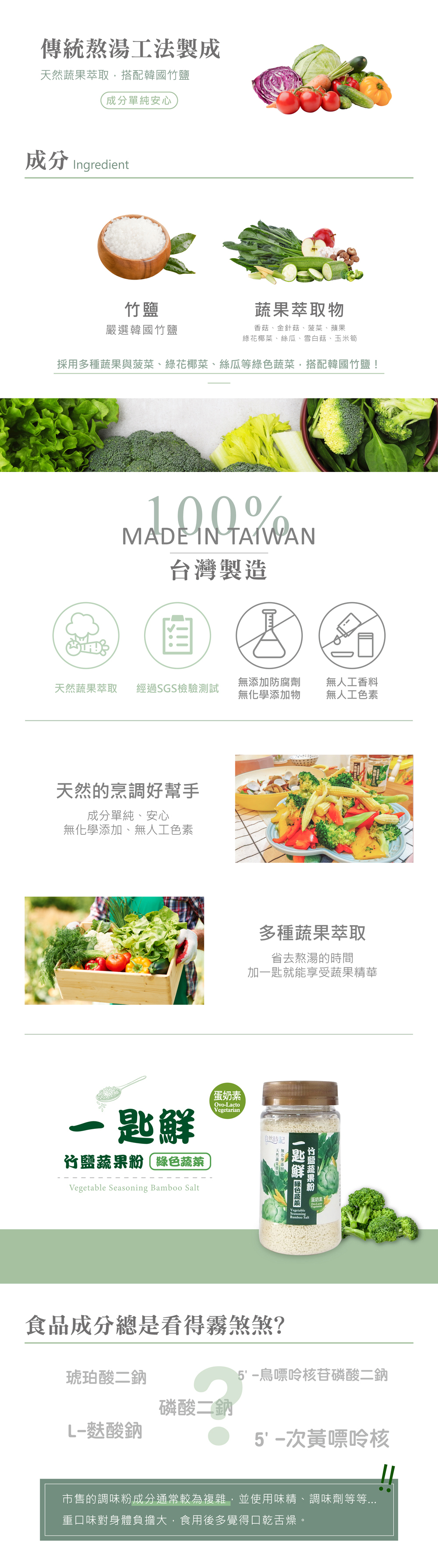 【自然時記】一匙鮮竹鹽 綠色蔬菜 120g|天然蔬果萃取|無化學添加|奶素可食