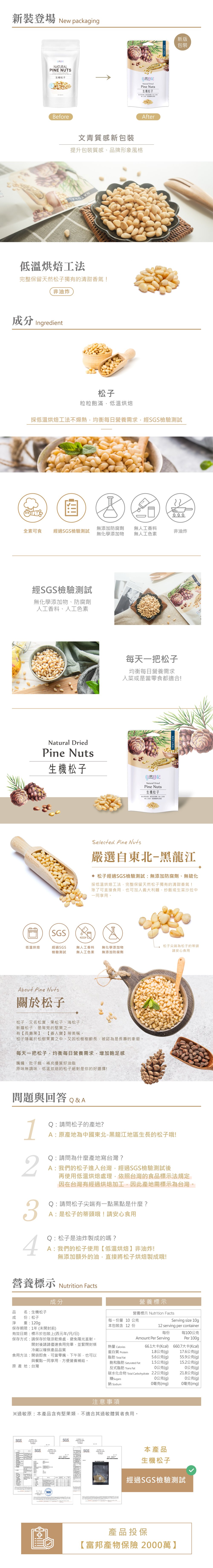 【自然時記】生機松子 (袋) 全素可食 | 低溫烘焙 | 無添加物 | 開袋即食
