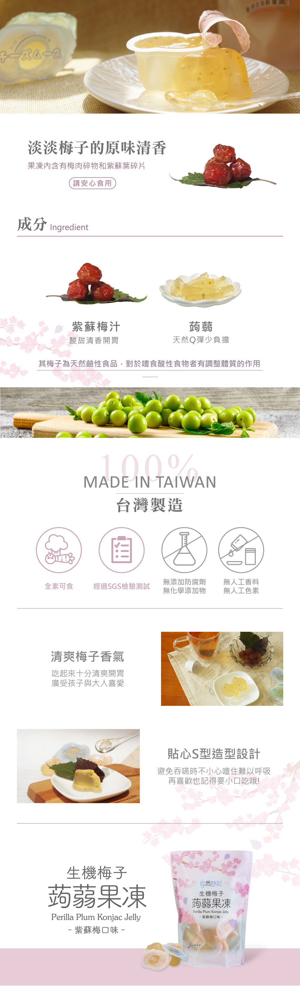 添加紫蘇葉以及少許糖於果凍中 ,保留梅子原味,冷藏後更是Q彈好食