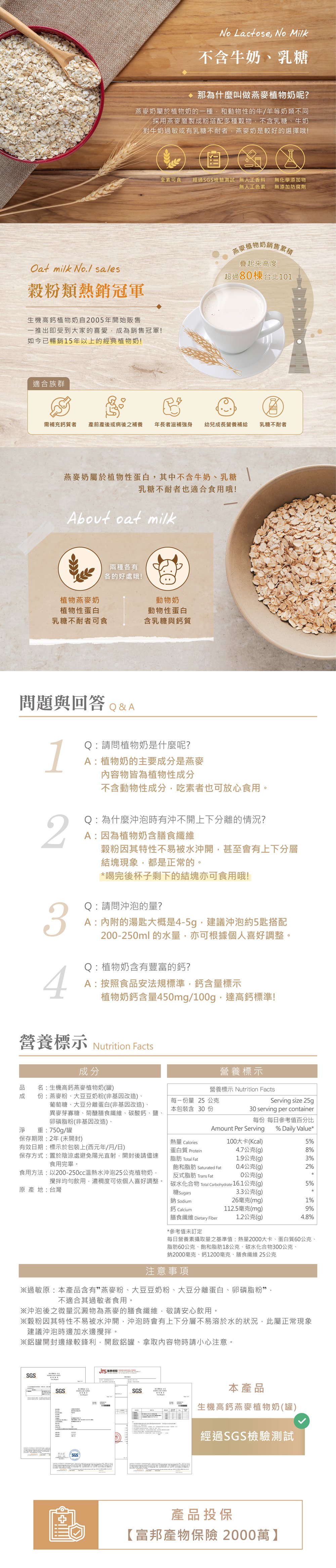 成分:燕麥粉、大豆豆奶粉(非基因改造)、葡萄糖、大豆分離蛋白(非基因改造)、異麥芽寡糖、菊糖膳食纖維、碳酸鈣、鹽、卵磷脂粉(非基因改造)